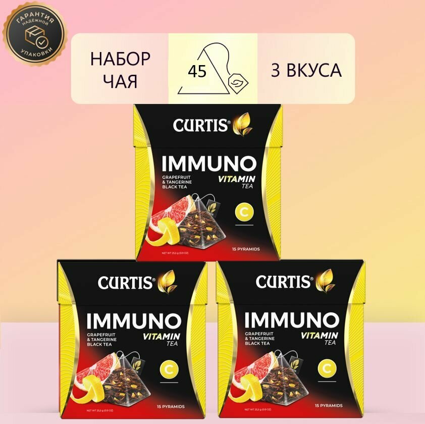 Купить Чай черный с цедрой апельсина и лимона, витамином C, фруктовый CURTIS Immuno, набор 3 уп х 15 пир