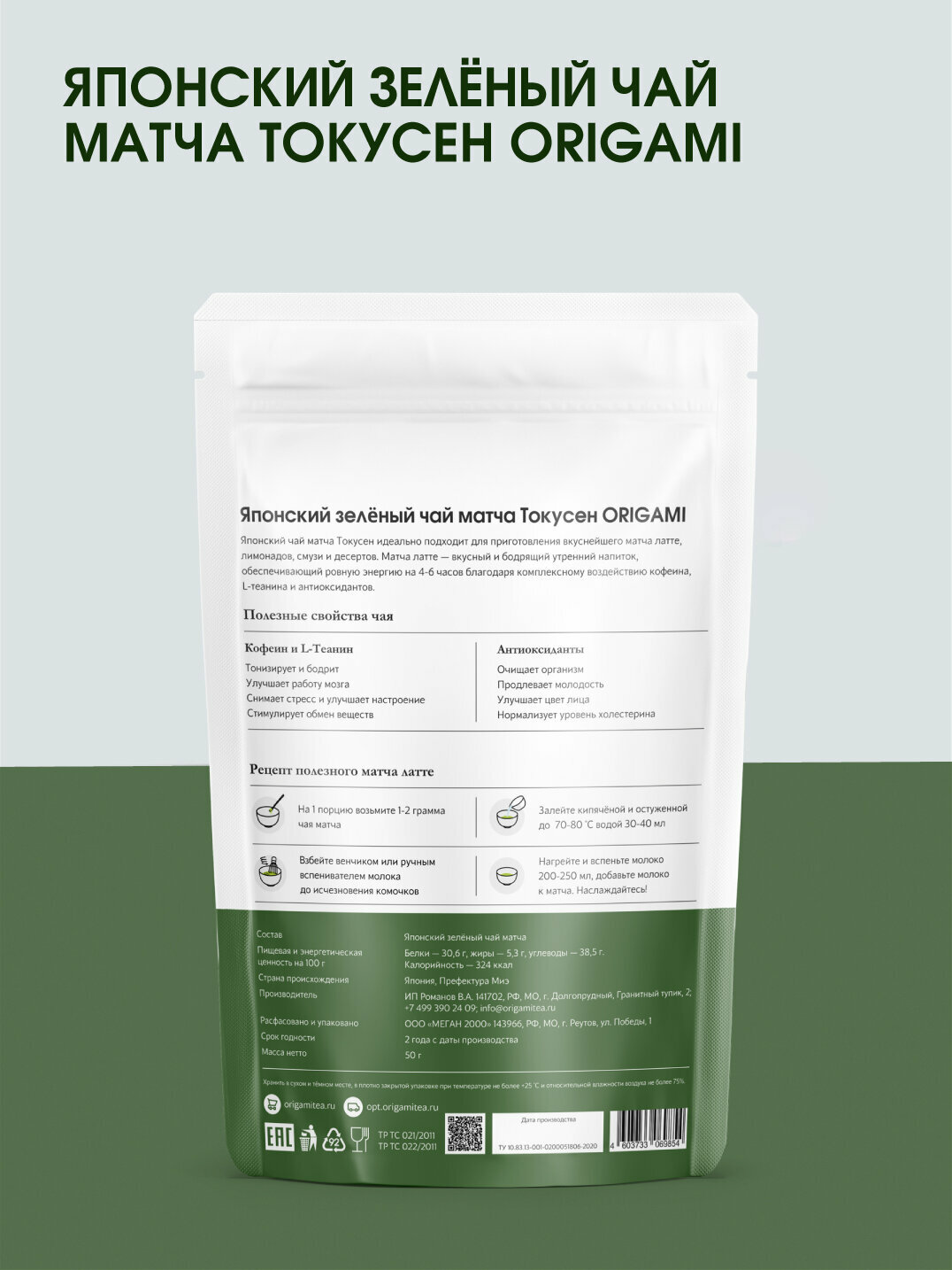 Чай зелёный ORIGAMI TEA Tokusen Matcha, растворимый, 50г, Япония интересное: