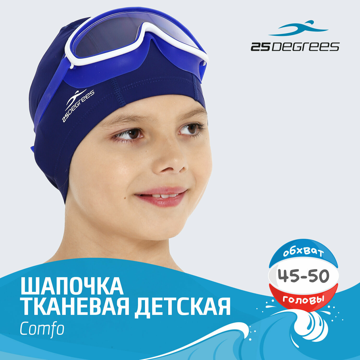 СохранитьШапочка для плавания тканевая 25DEGREES Comfo детская, цвет синий интересное: