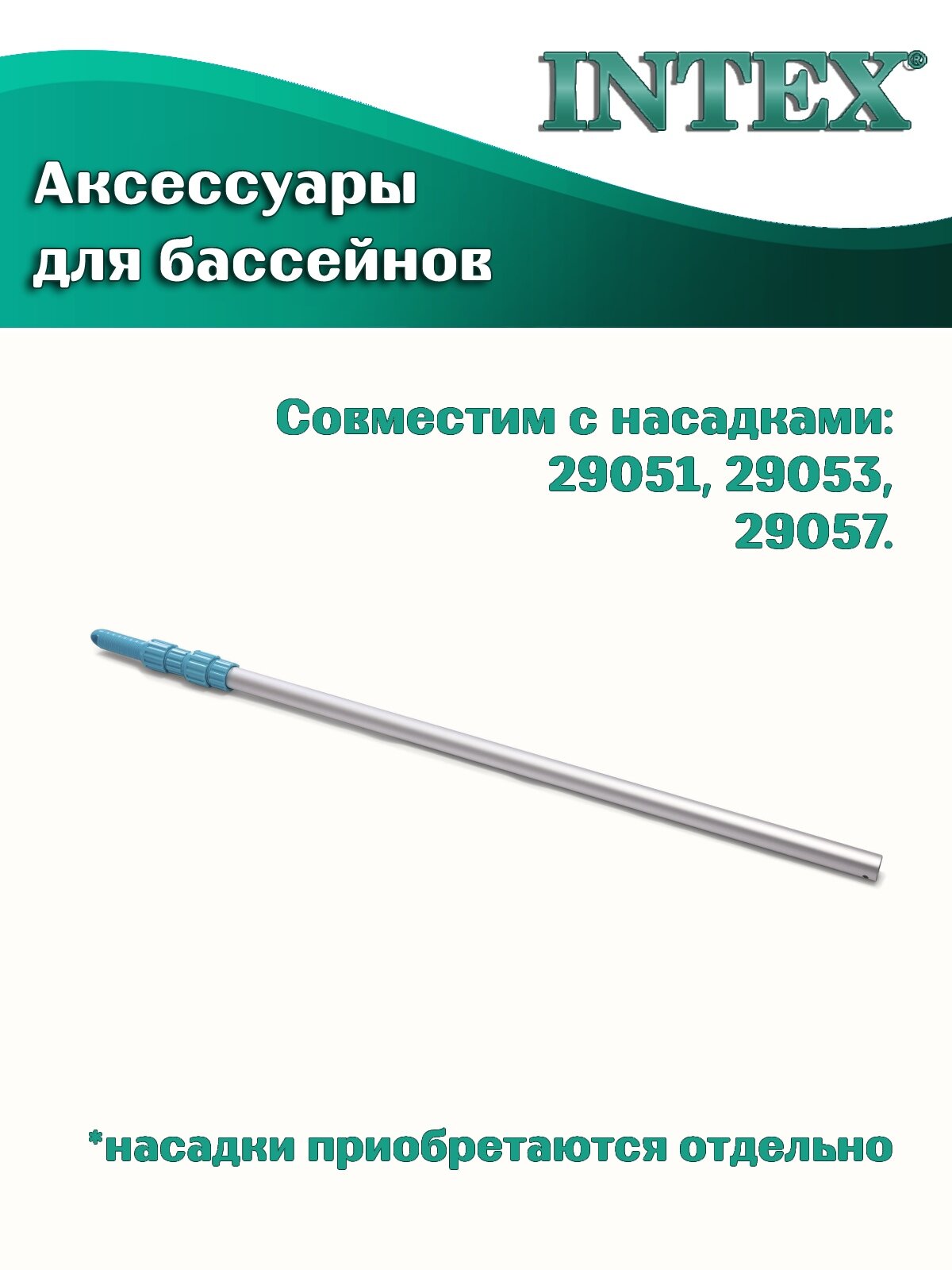 Телескопическая алюминиевая ручка Intex 29055, длина 2.79м, d=29.8мм интересное: