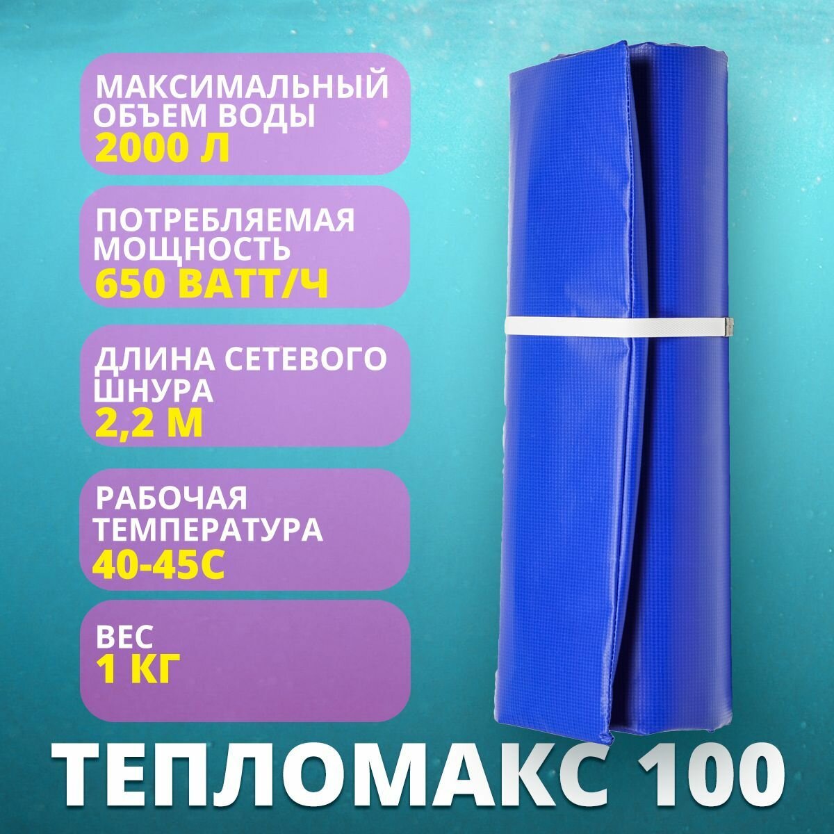 | Дополнительная информация | температура при кратковременном включении в сеть без установки под бассейн до 90C, рабочая температура при установке под бассейном с водой 40-45С; длина сетевого шнура 2,2 м |