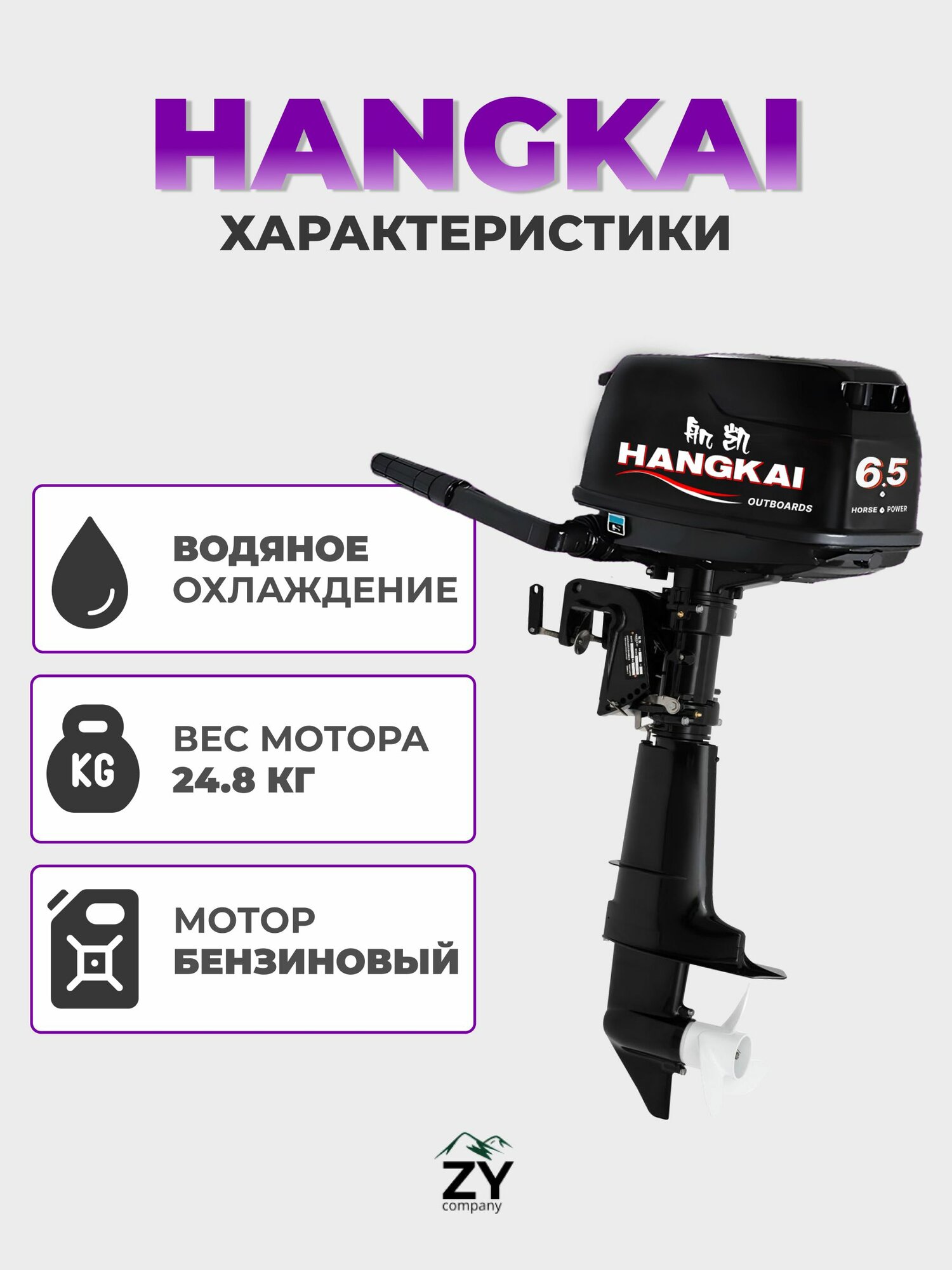 Купить Мотор лодочный 6,5 л HANGKAI 4-х тактный, бензиновый, подвесной