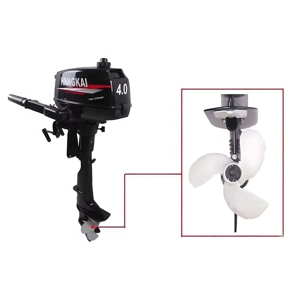 СохранитьМотор лодочный 4,0 л. с. HANGKAI-Ханкай 2-х тактный, бензиновый, подвесной, водяное охлаждение интересное: