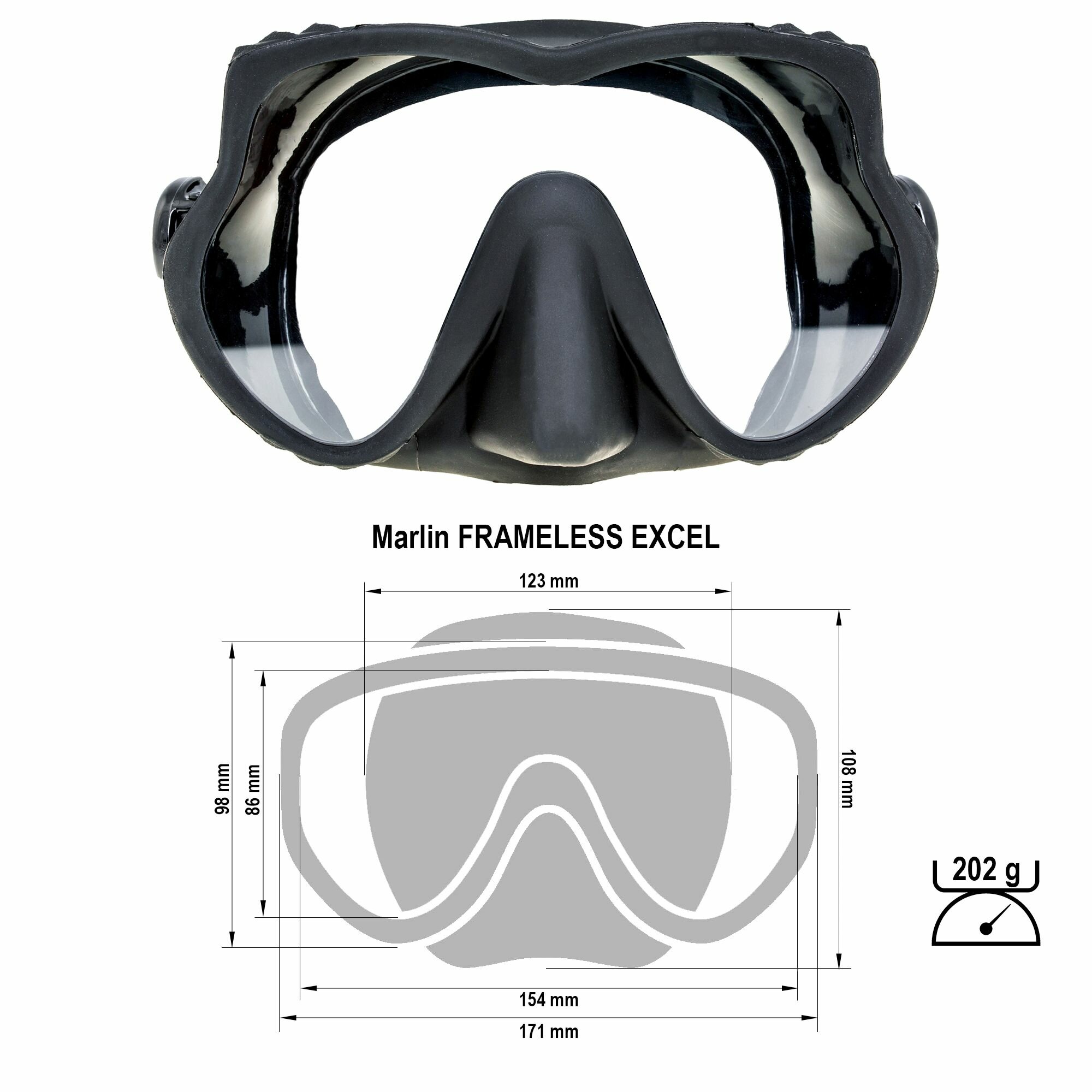 Маска для дайвинга Marlin FRAMELESS EXCEL BLACK
