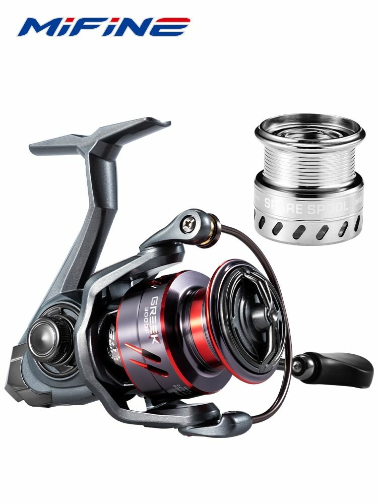 Купить Катушка рыболовная MIFINE GREEK X 3000F, 6+1 подшипник, для рыбалки, для спиннинга, для фидера, две алюминиевые шпули, ручка алюминиевая