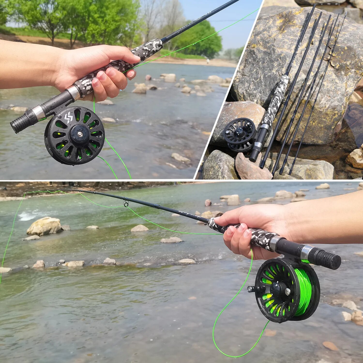 Купить Удочка с катушкой Sougayilang для ловли нахлыстом, длина 2.7 м, вес стержня 115 г, вес катушки 170 г, цвет черный/зеленый, Зелёный