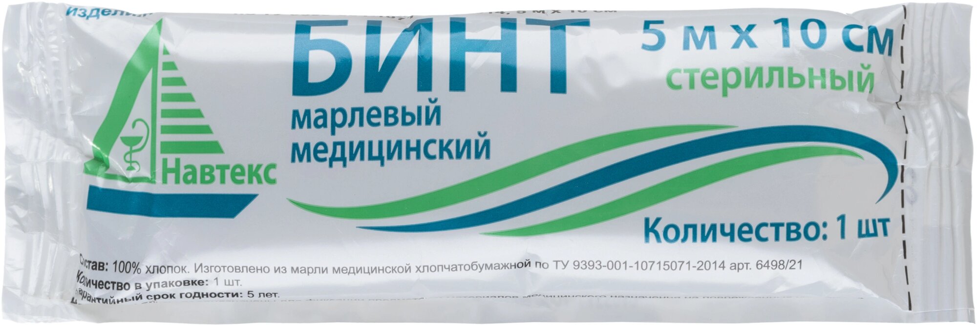 Купить Перевяз. ср-ва Бинт стер. 5мх10см, Навтекс инд уп. пл.27г 6498/21 ШК03386