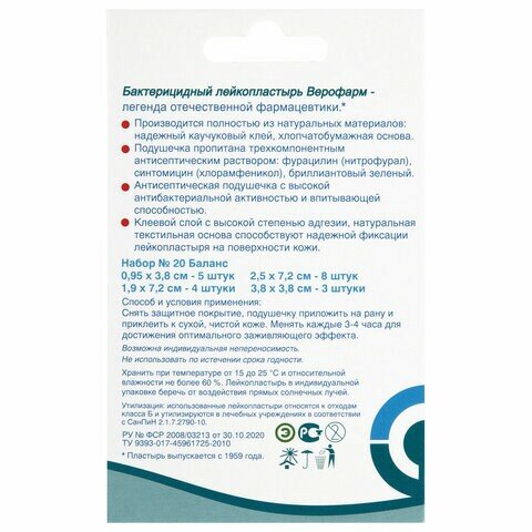 Лейкопластырь бактерицидный верофарм баланс телесный набор №20