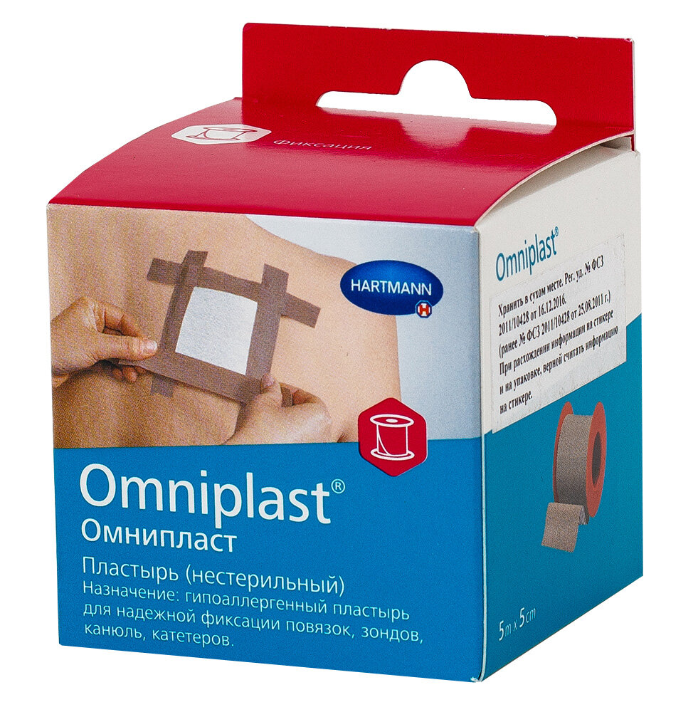 OMNIPLAST Фиксирующий пластырь в катушке из текстильной ткани, 5 см х 5 м интересное: