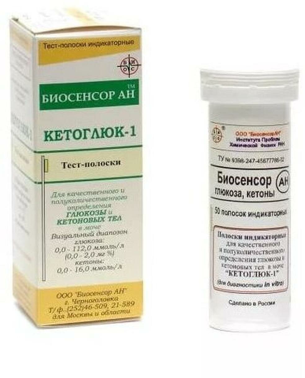 Тест-полоски Биосенсоран Кетоглюк, для определения глюкозы и кетонов, 50 шт интересное: