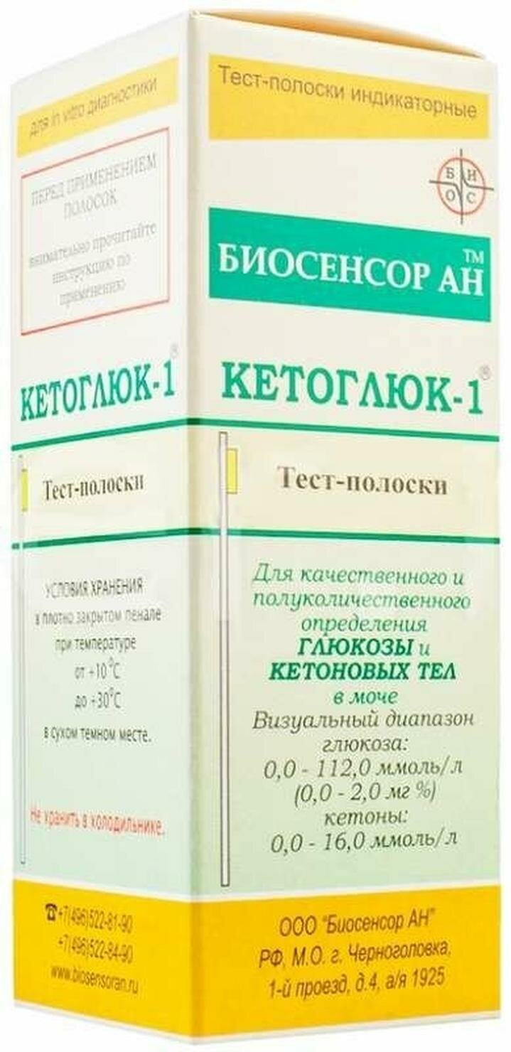 Купить Тест-полоски Биосенсоран Кетоглюк, для определения глюкозы и кетонов, 50 шт