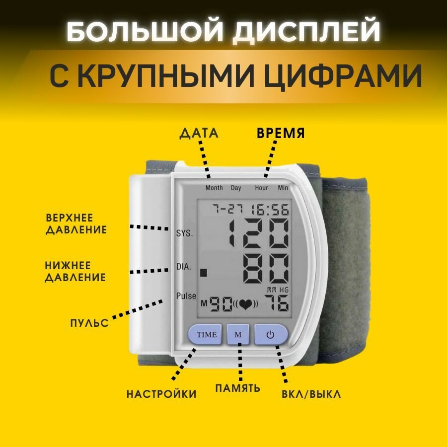 Купить Тонометр автоматический, на запястье, от батареек, с индикацией пульса