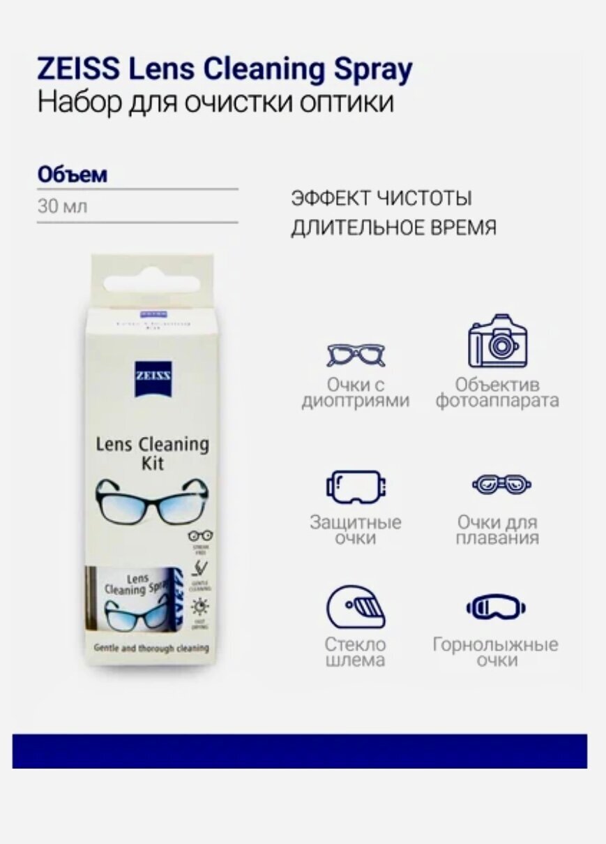 Спрей Zeiss Lens Cleaning Kit 30 мл + салфетка интересное: