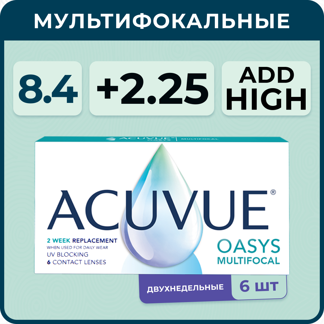 Мультифокальные линзы ACUVUE Oasys Multifocal 6 линз R 8.4 SPH -2.25 Аддидация HIGH (от +2,00 D до +2,50 D), двухнедельные
