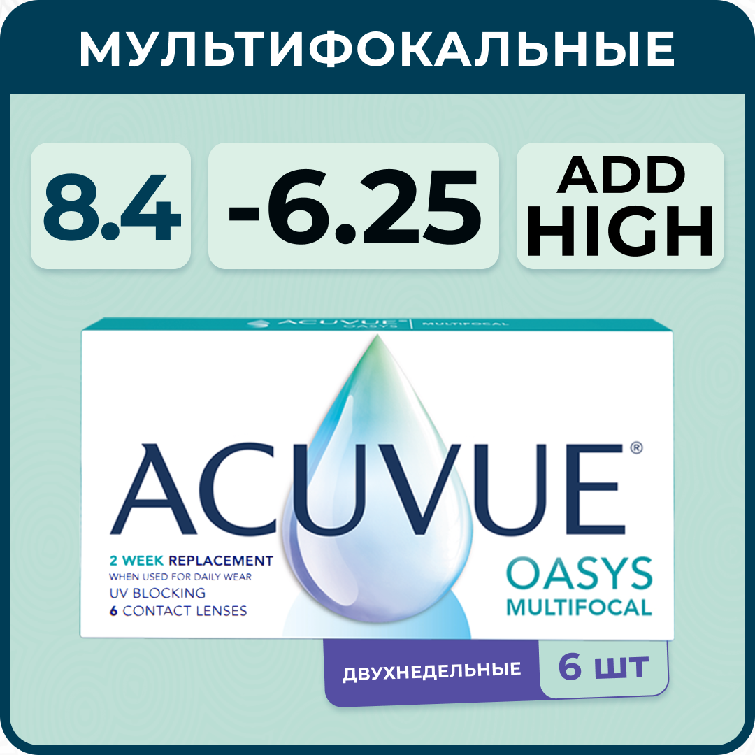 Купить Мультифокальные линзы ACUVUE Oasys Multifocal 6 линз R 8.4 SPH -6.25 Аддидация HIGH (от +2,00 D до +2,50 D), двухнедельные