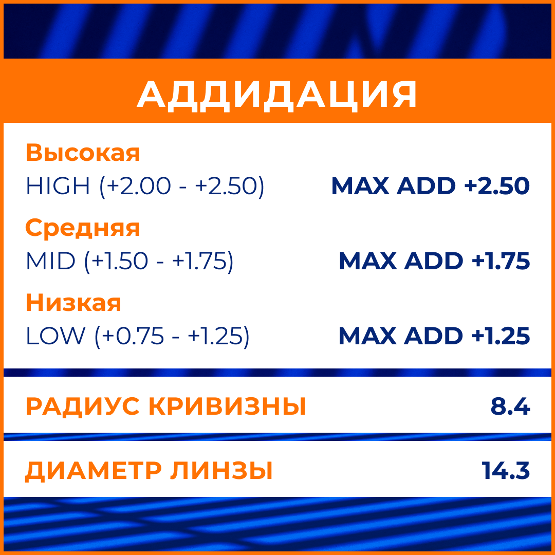 Мультифокальные линзы ACUVUE Oasys Multifocal 6 линз R 8.4 SPH +0.25 Аддидация HIGH (от +2,00 D до +2,50 D), двухнедельные