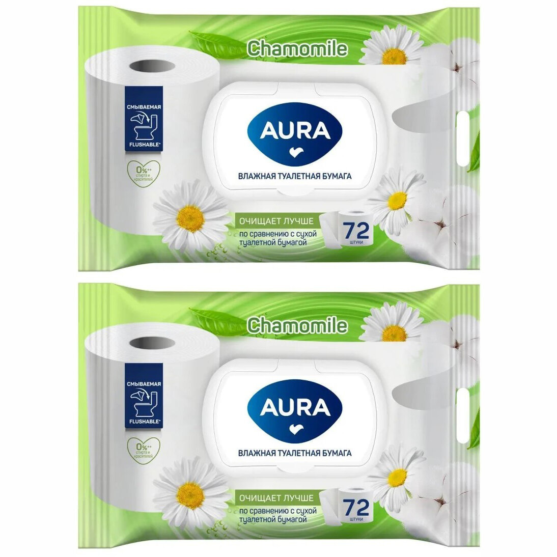 Влажная туалетная бумага Aura Nice с ромашкой, 42 шт, 2 упаковки.