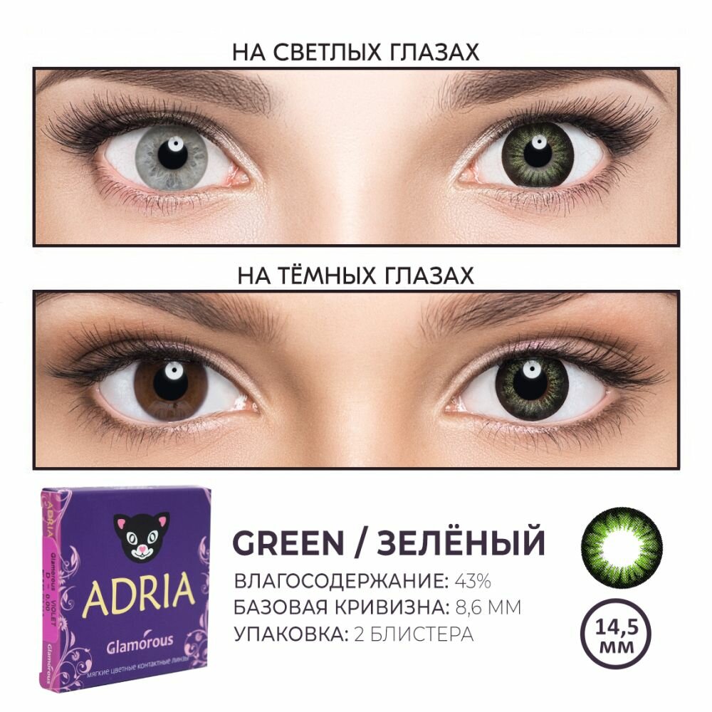 Набор цветные контактные линзы Adria Glamorous color COLOR BOX №3, GREEN, квартальные, -0,00 / 14,5 / 8,6 / 2 шт.