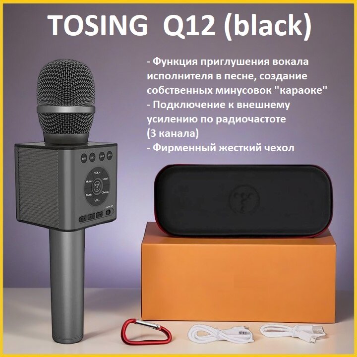 TOSING Q12 Black (черный) - беспроводной караоке Bluetooth микрофон нового поколения, Эхо, FM интересное: