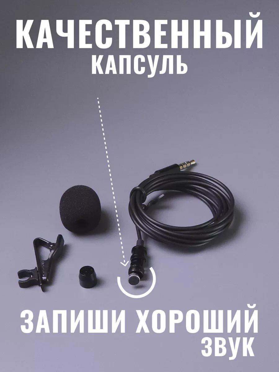 2 Микрофона петличный проводной для телефона, петличка на одежду для записи звука, стрима блогеров, с ветрозащитой, портативный интересное: