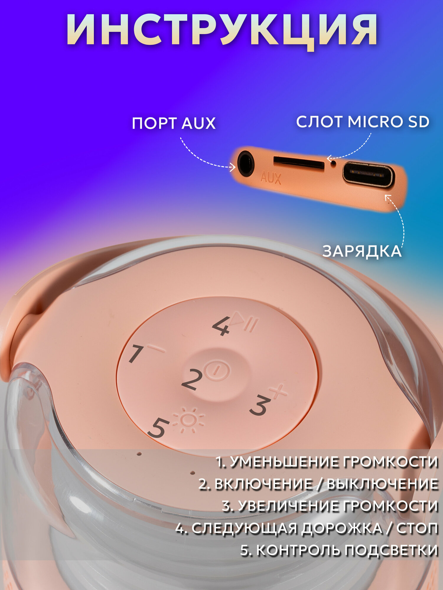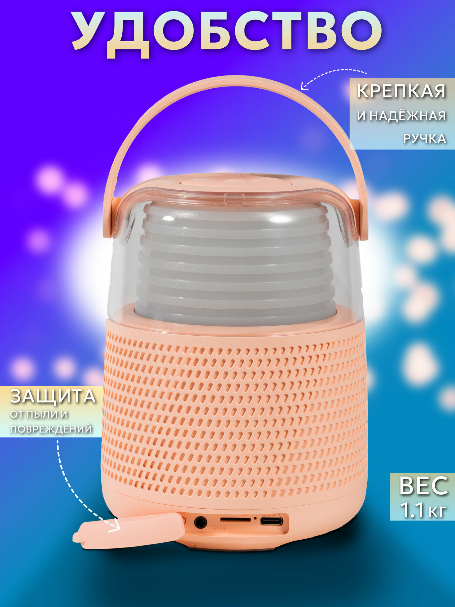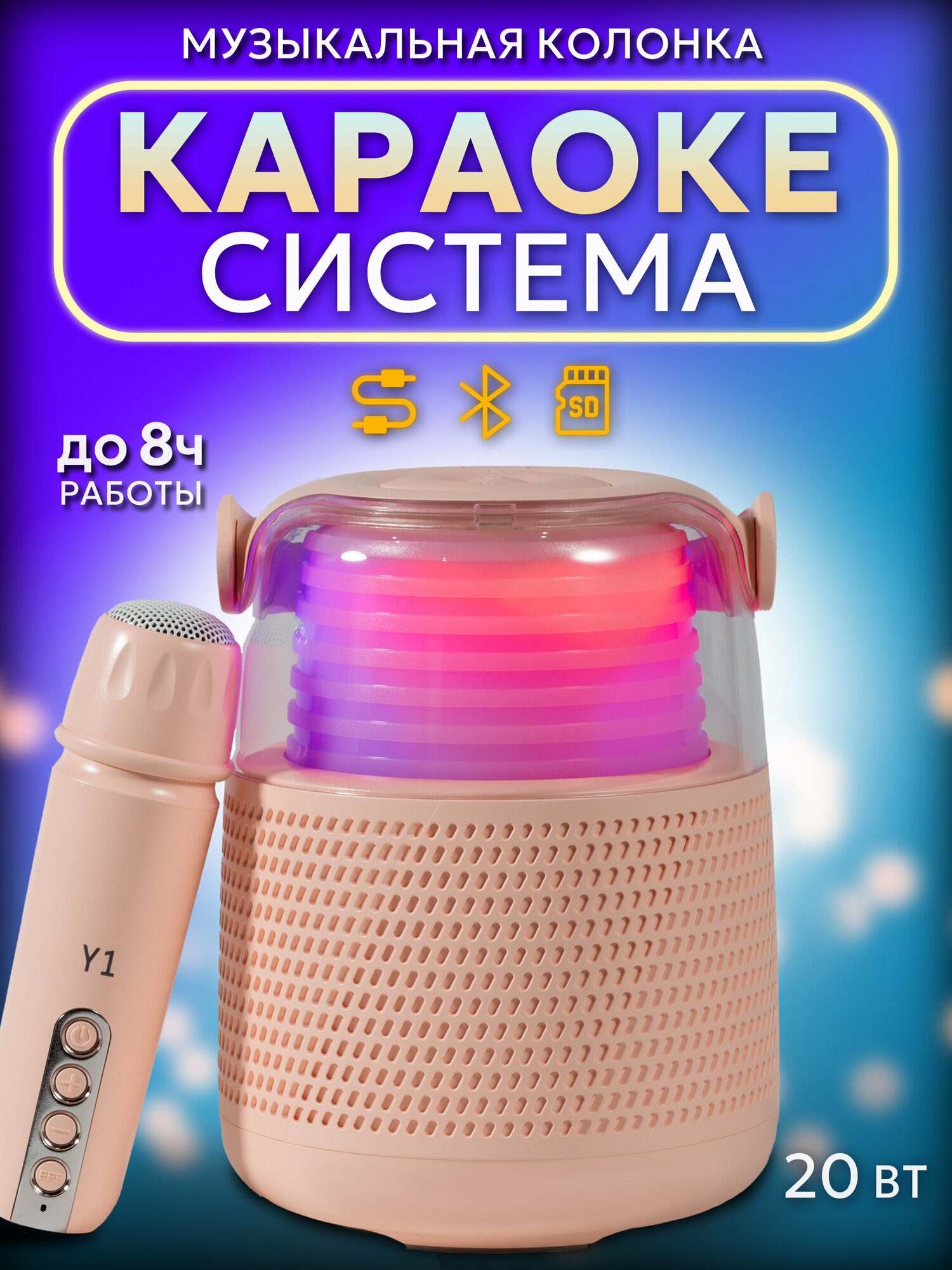 Портативная колонка Electroworld Y-1, с беспроводным караоке-микрофоном, розовый интересное: