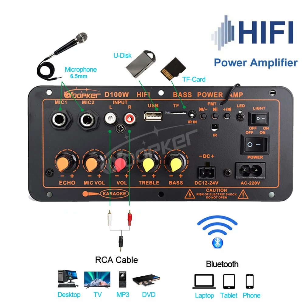 Woopker D100 Bluetooth усилитель 220В, D100, EU интересное:
