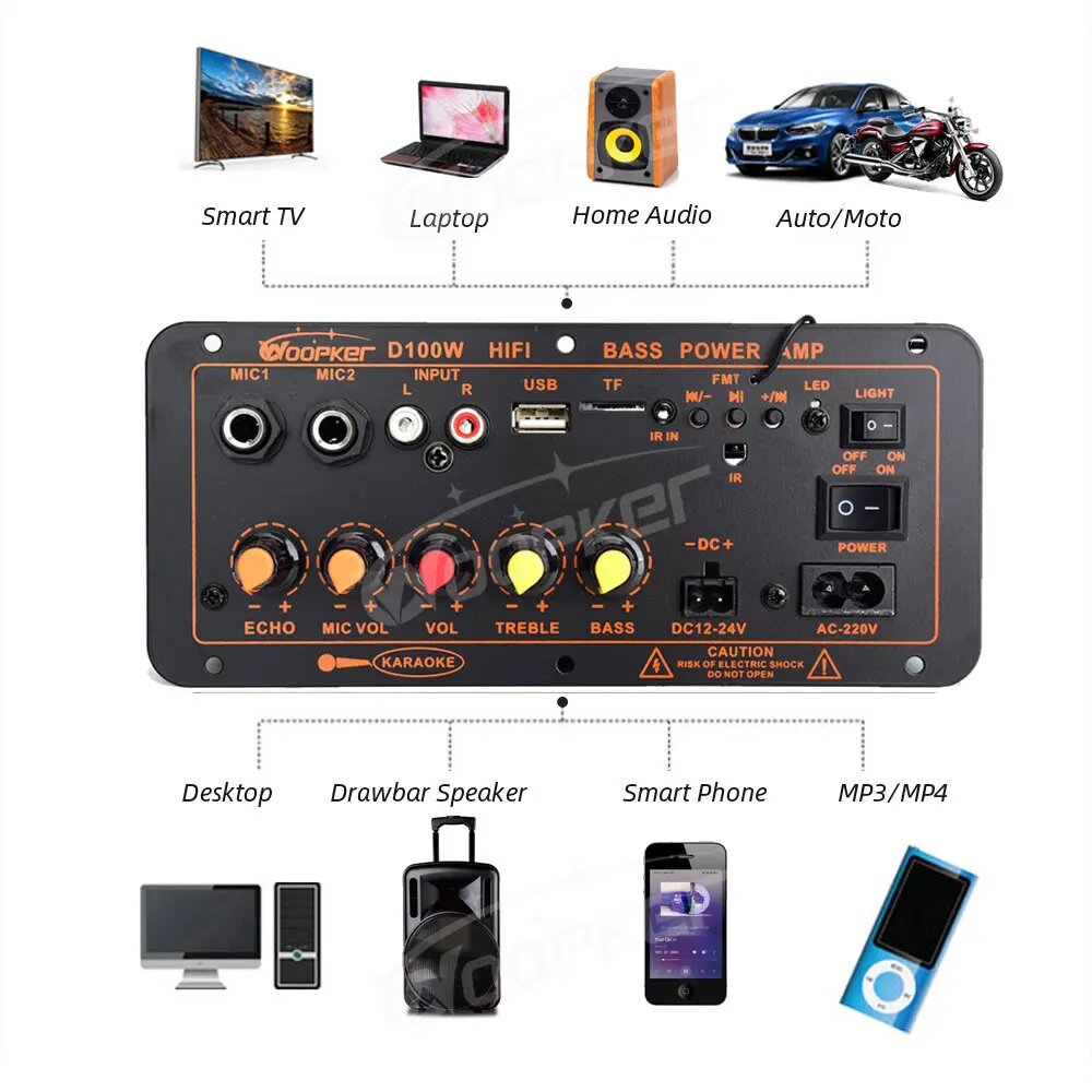 Внешняя панель Woopker 300 Вт, D100, сабвуфер, двойной микрофон, AMP модуль, 12 В, 24 В, 220 В, D10, EU