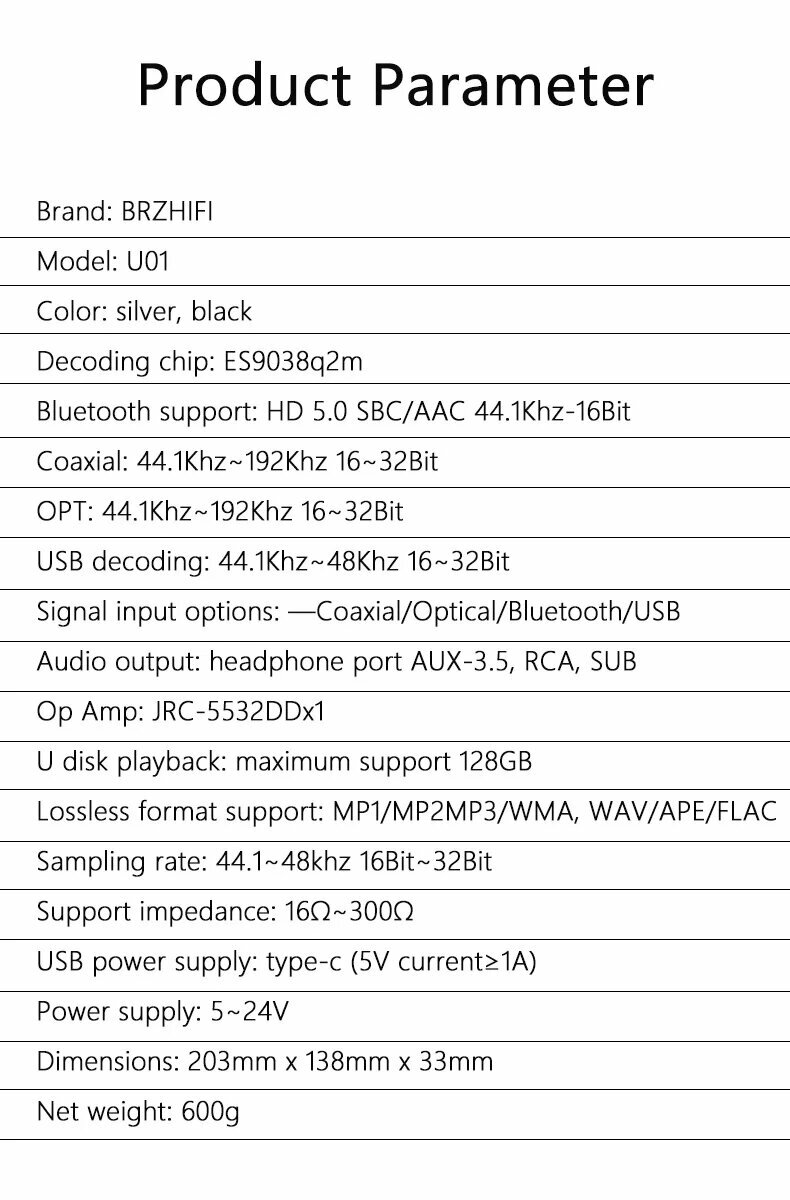 Купить BRZHIFI U01 Цифровой аудио плеер ES9038Q2M, AC 110V-240V