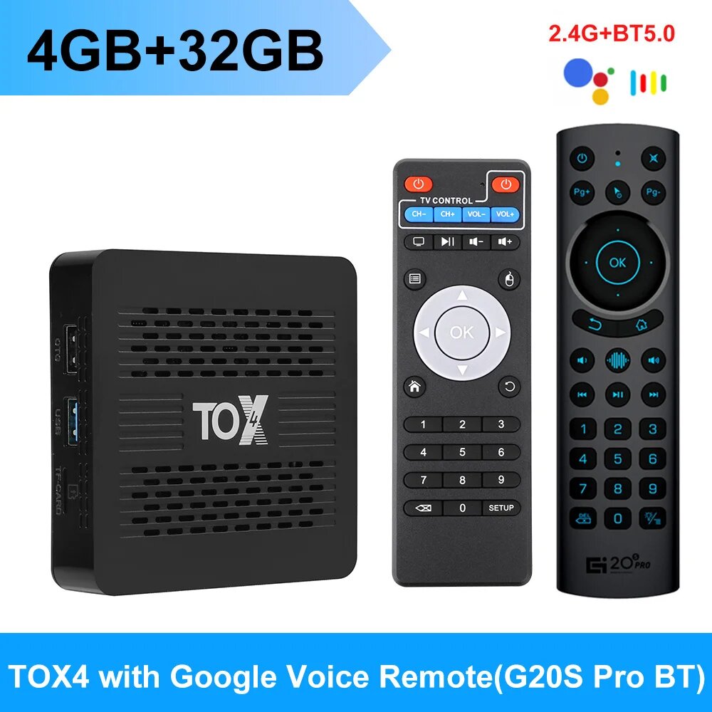 ТВ-приставка TOX4 на Android 13, 4 + 32 ГБ, Wi-Fi, 1000 м, 4GB32GB G20S BT, Европейская
