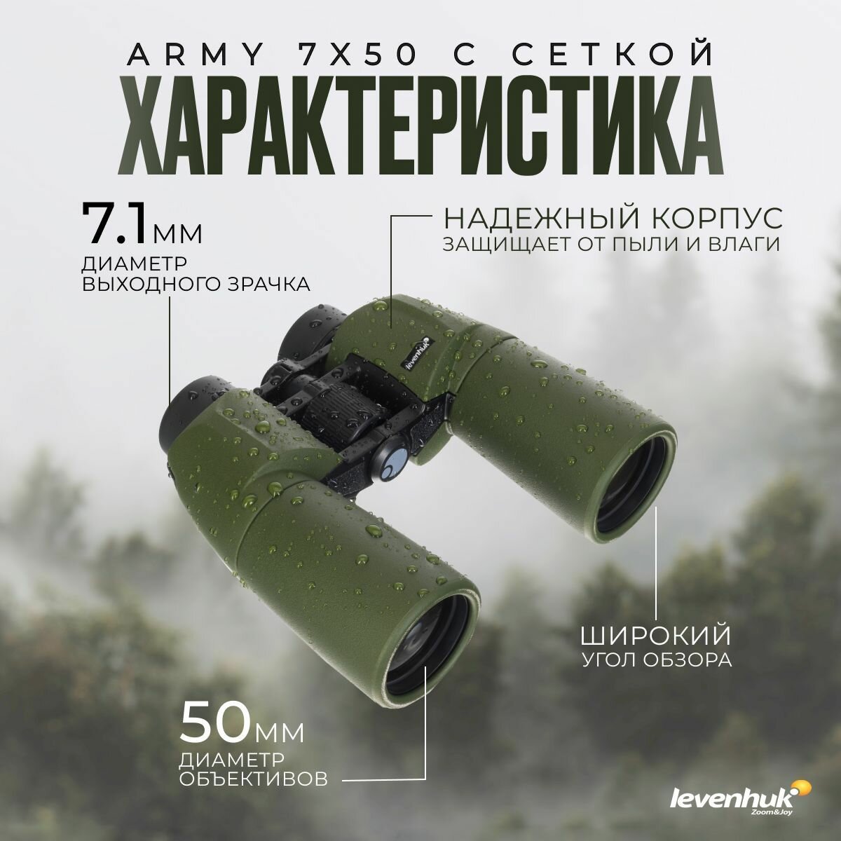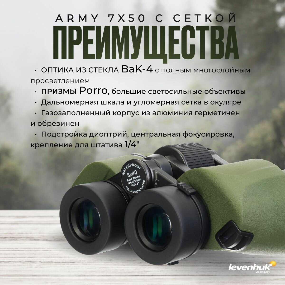 Бинокль Levenhuk (Левенгук) Army 7x50 с сеткой