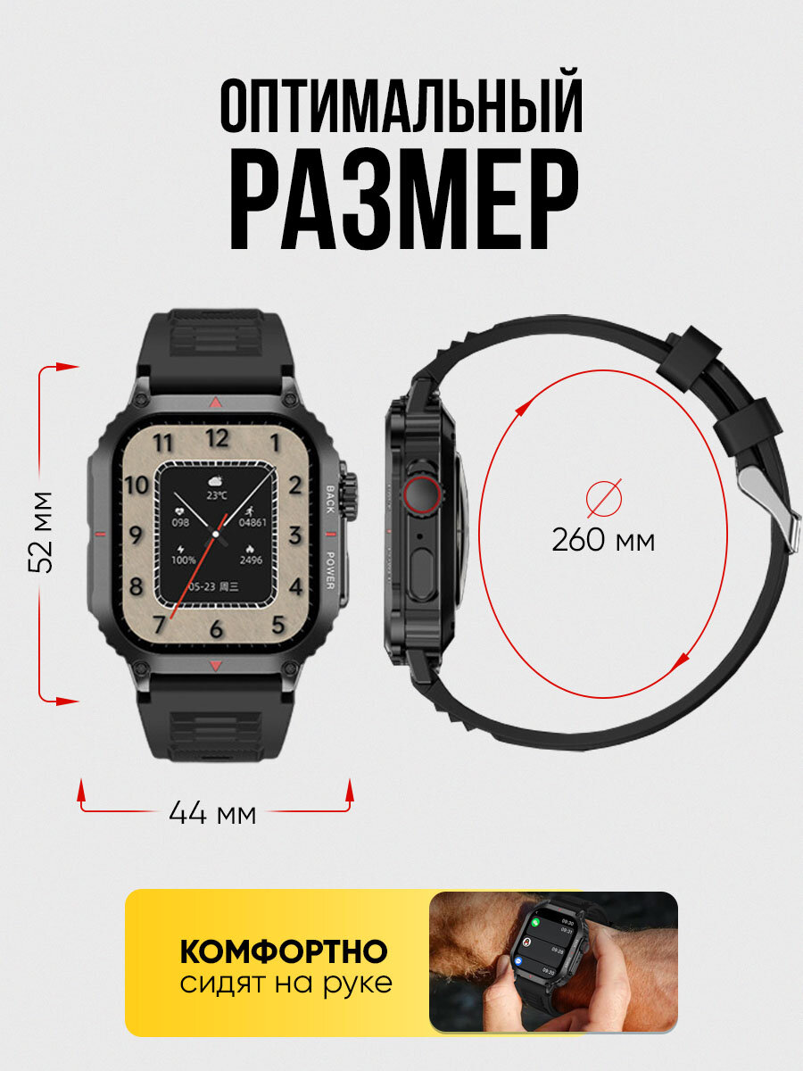 Водонепроницаемые ударопрочные смарт часы для спорта и туризма DK66 Black интересное: