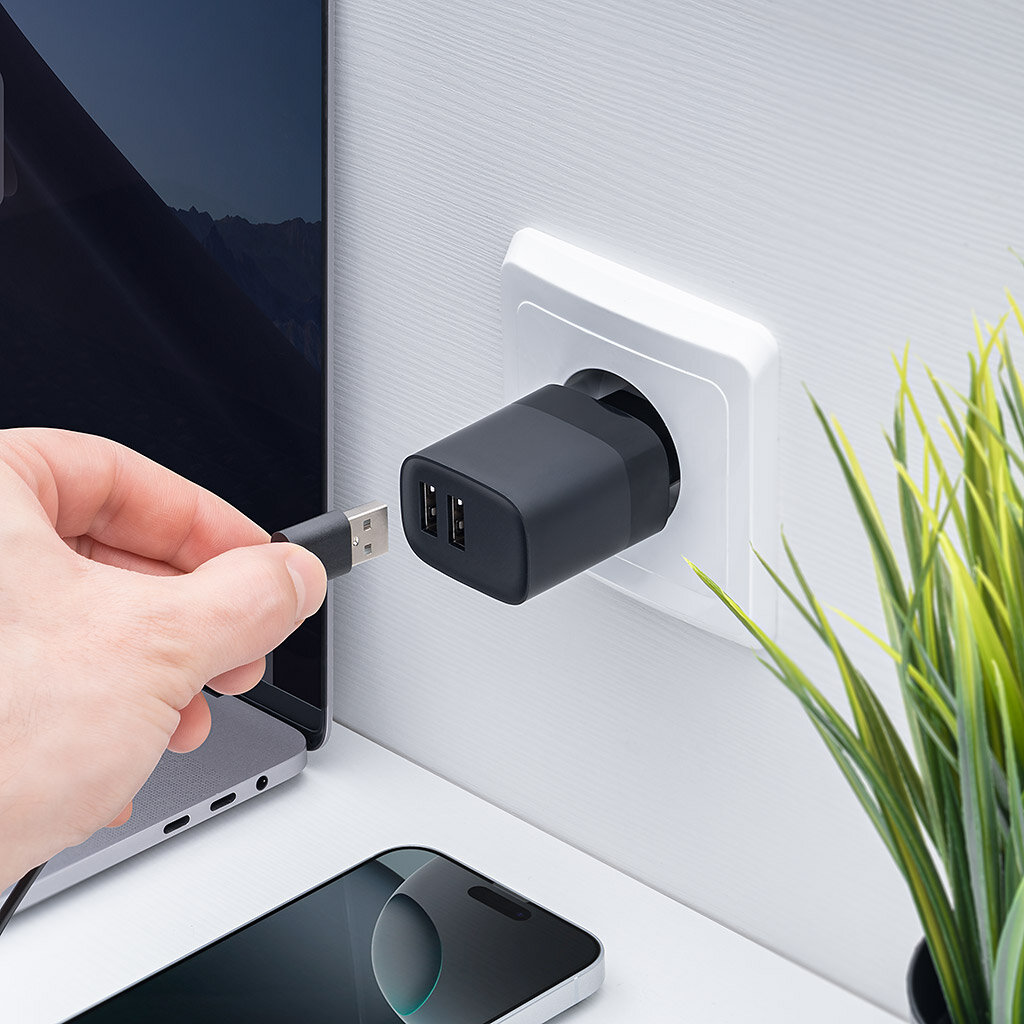 Купить Сетевое зарядное устройство USB-A + USB-A, 12Вт, черный, AXXA 2402