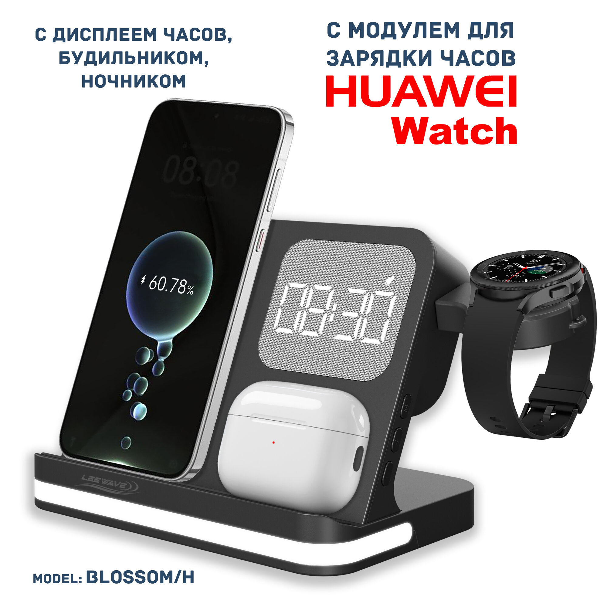 Беспроводная зарядка 3 в 1 для HUAWEI, док станция QI (BLOSSOM/H model) Черный интересное: