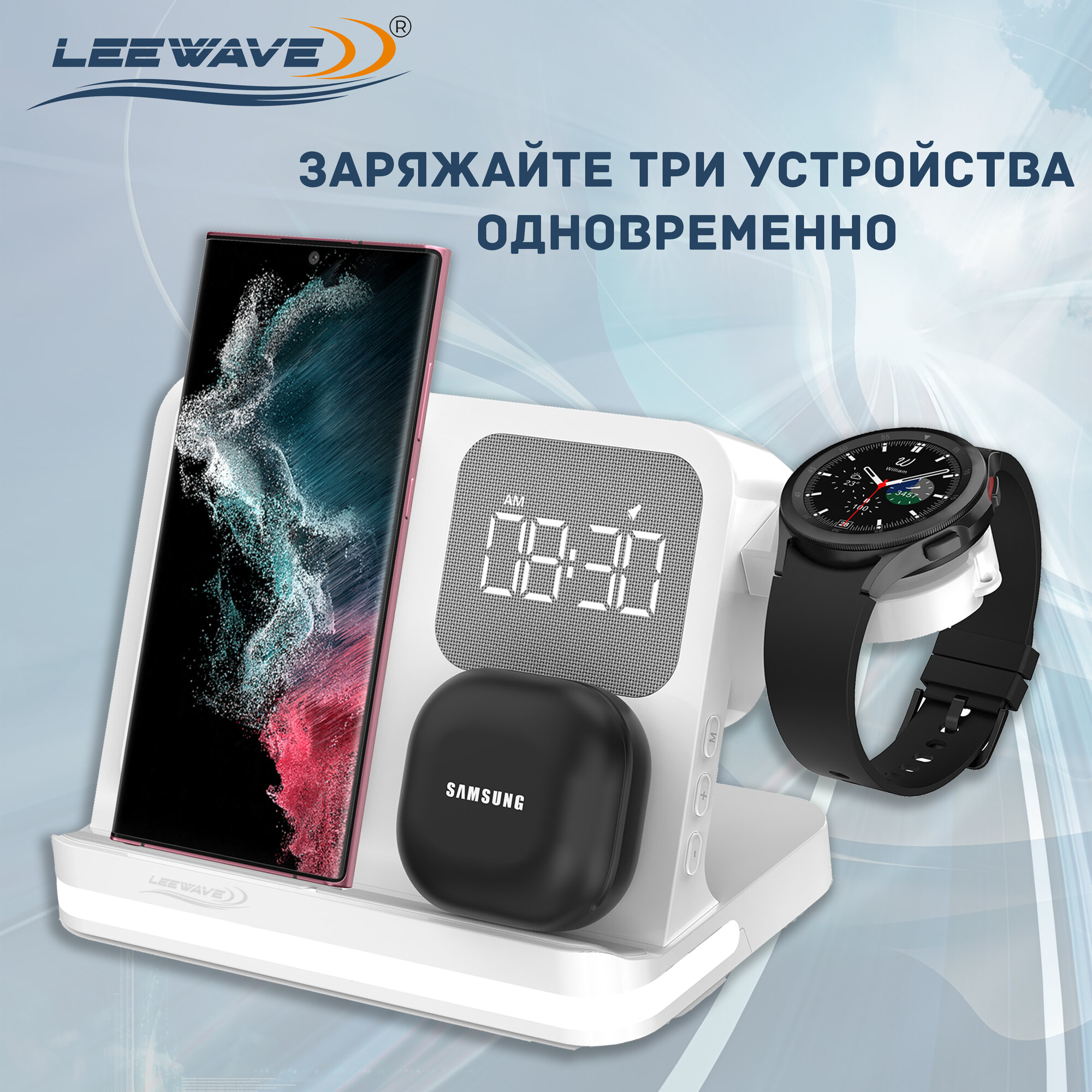 | Конструкция беспроводного устройства | для 1 телефона / зона для беспроводных наушников / зона для умных часов |