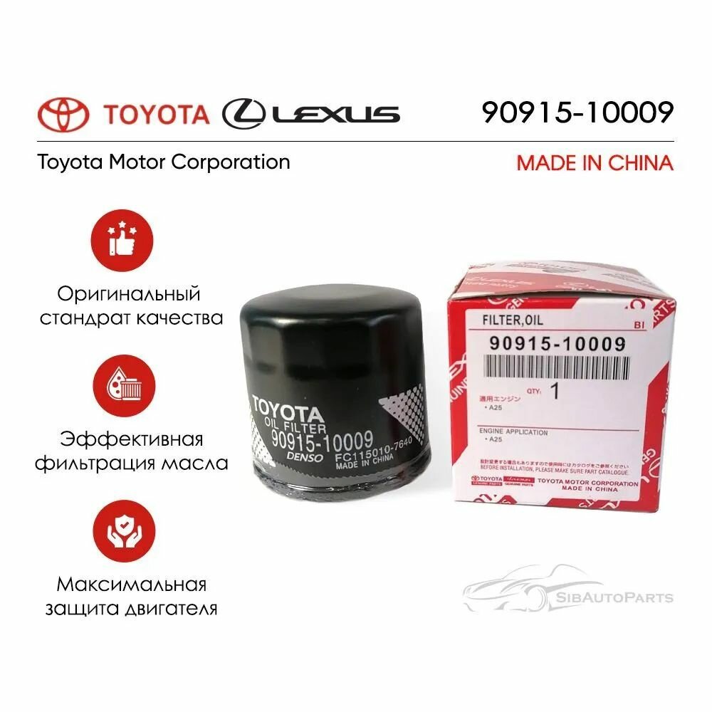 Фильтр масляный 90915-10009 Toyota Camry 70, RAV-4, C-HR, CAMRI, CROWN, YARIS