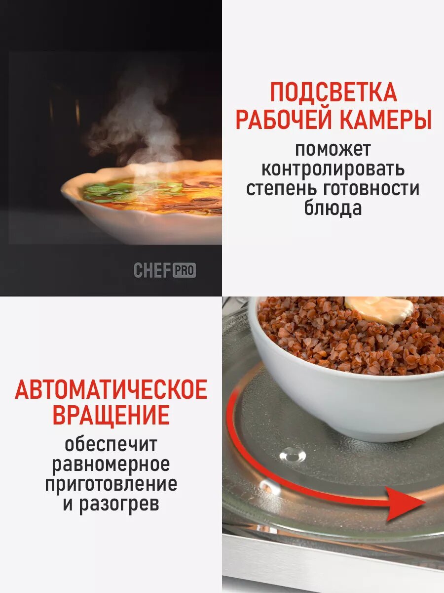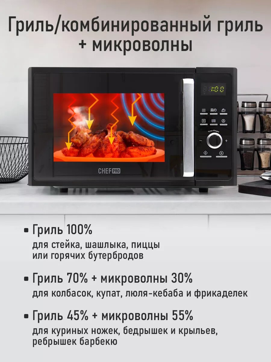 Микроволновка микроволновая печь СВЧ CHEF PRO CF-MW1954C конвекция гриль черный интересное: