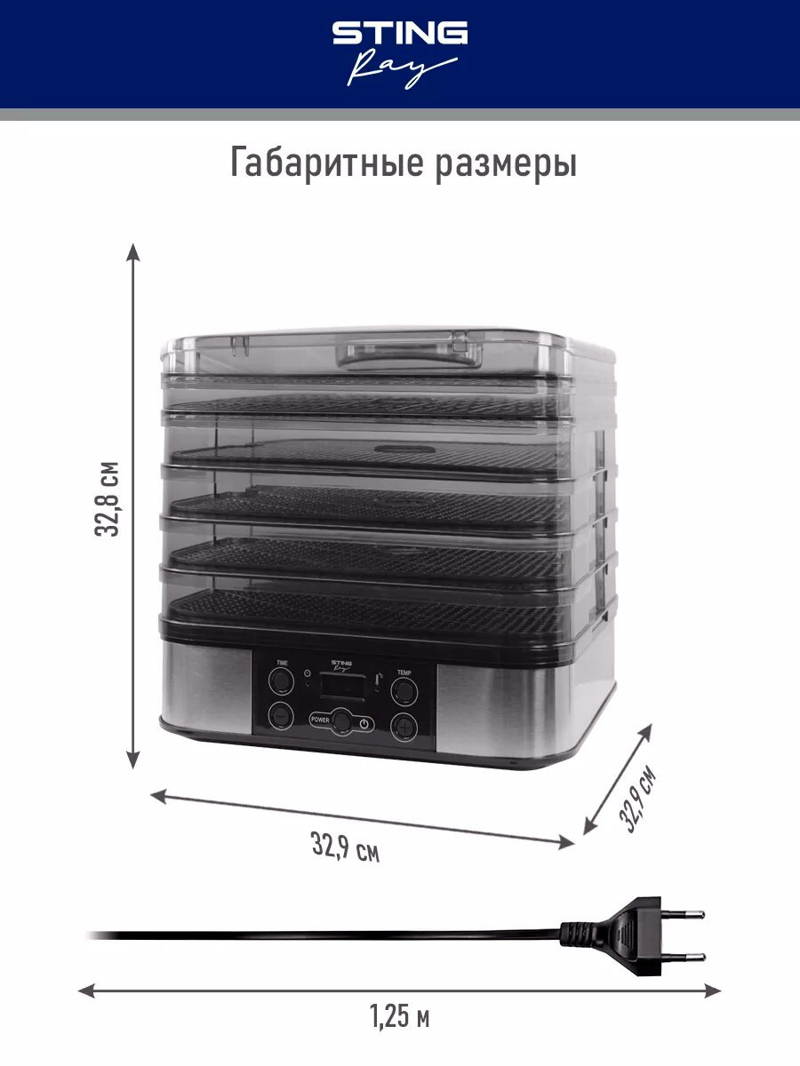 Дегидратор сушилка для овощей электросушилка STINGRAY ST-FD700C 10 поддонов (2 основных + 4 разборных + 2 для пастилы + 2 для ягод) черный жемчуг интересное: