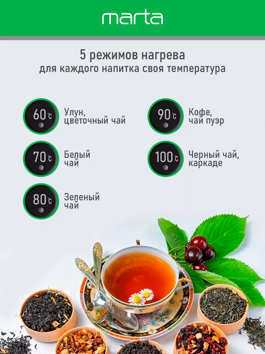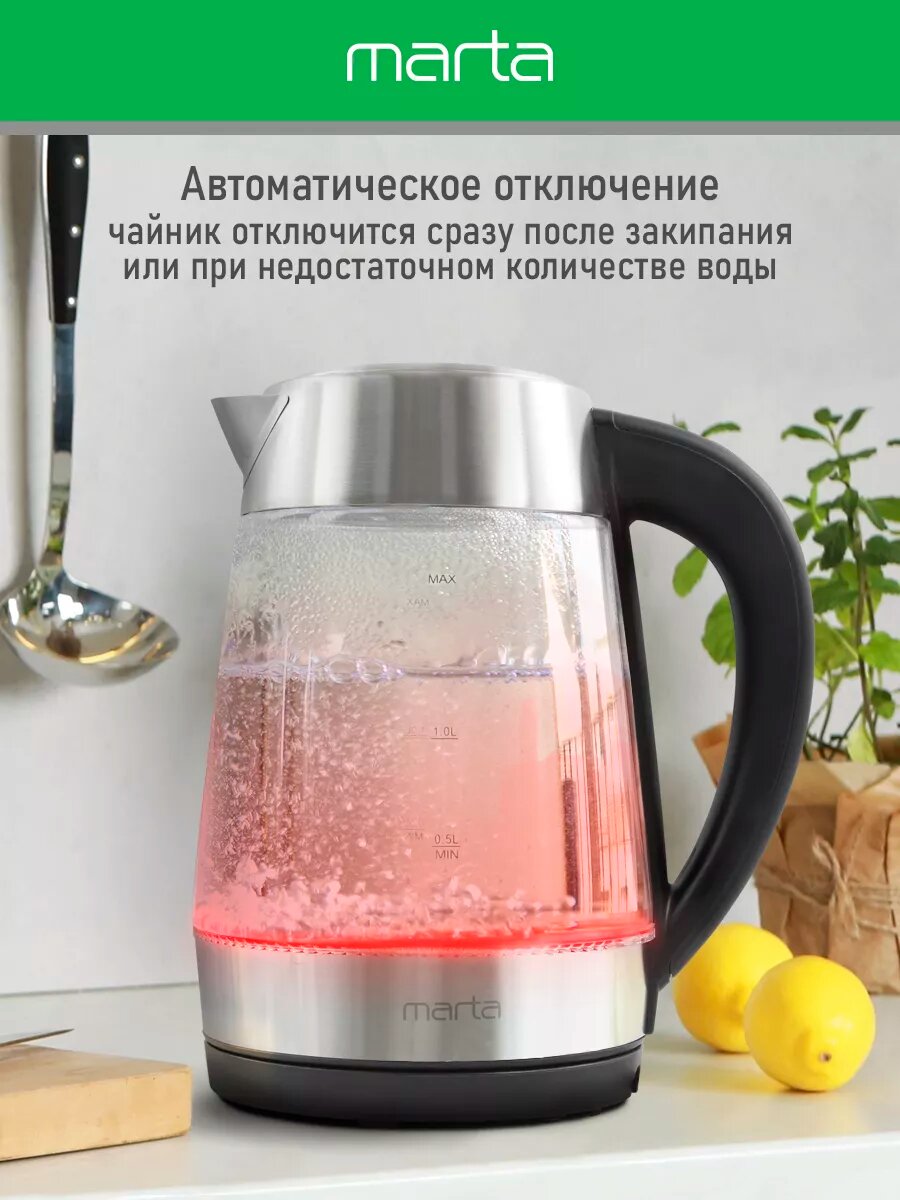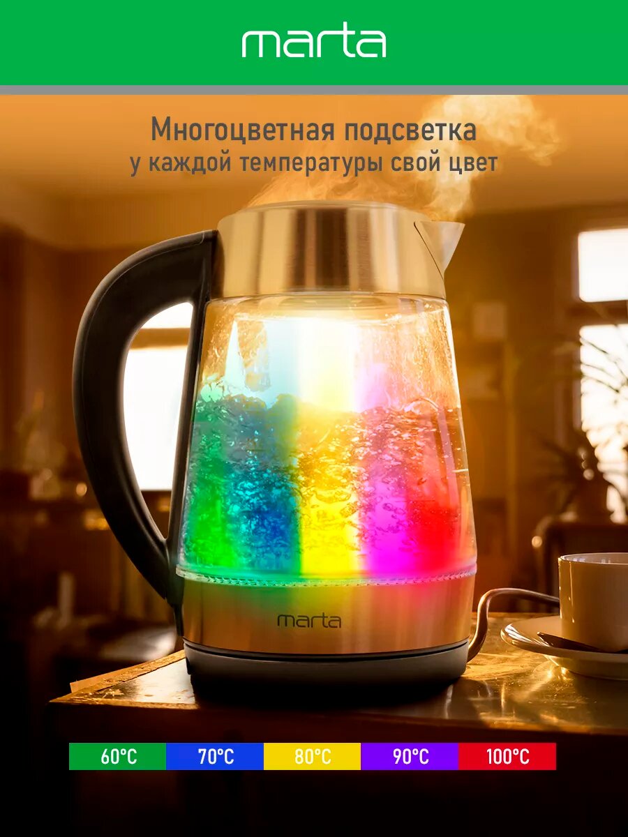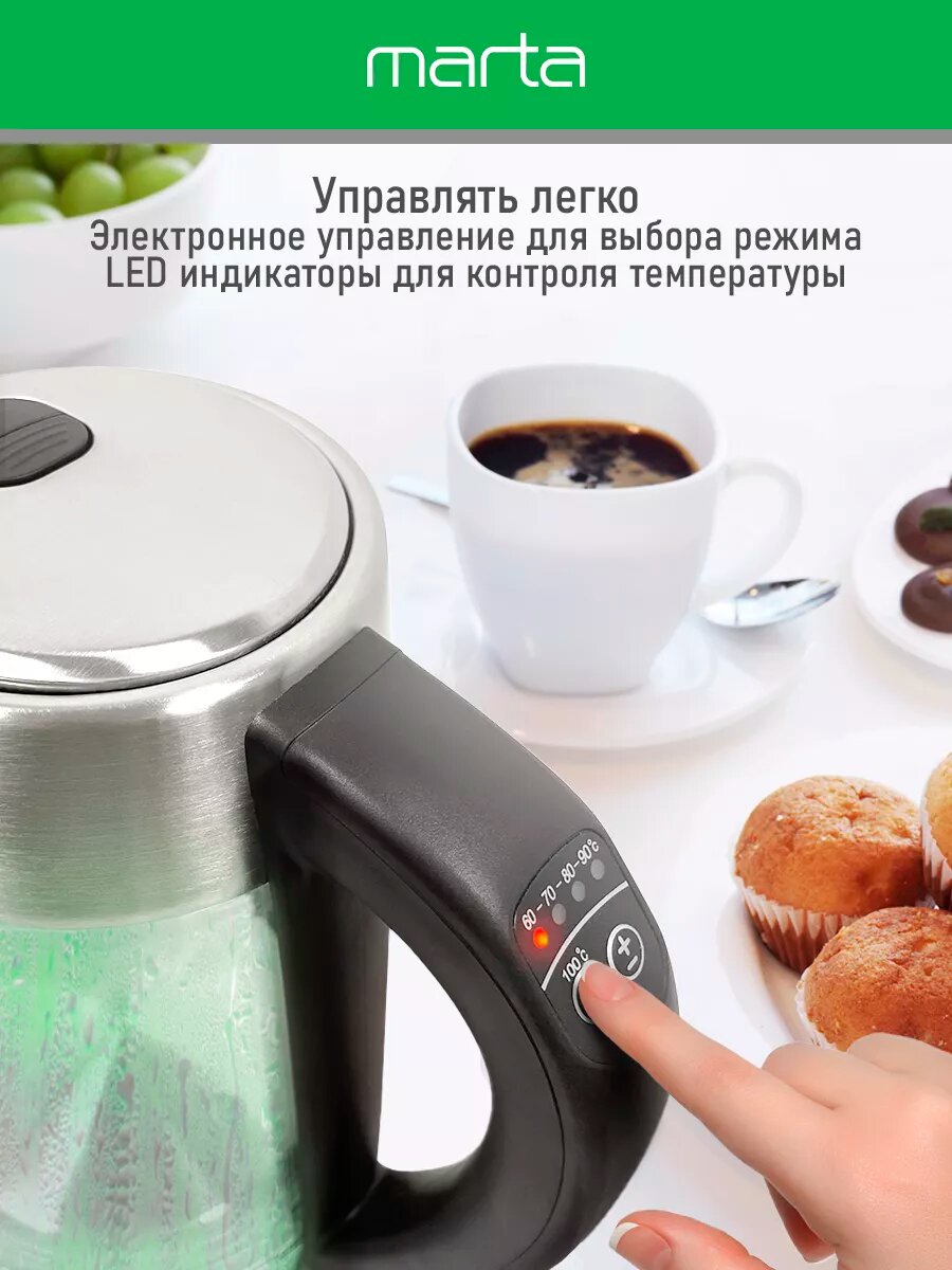 Электрический чайник MARTA MT-4611 черный с контролем температур, умный 1.8 л интересное: