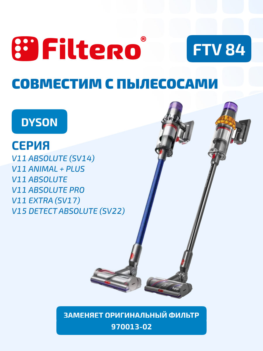 Filtero FTV 84 фильтр для вертикального пылесоса DYSON V11 Absolute Pro, Animal + Plus, SV 14, V15 интересное: