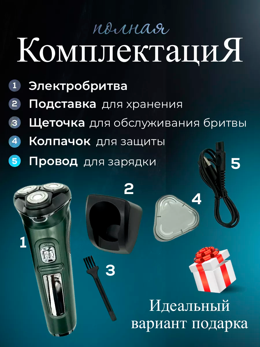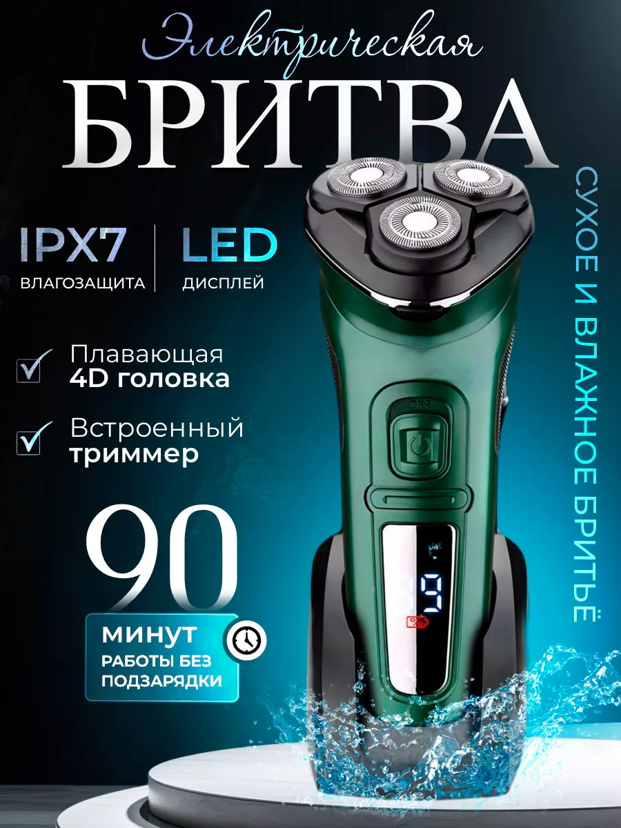 Электробритва для мужчин для сухого и влажного бритья 3D/электрическая бритва мужская/домашняя/для бритья головы, бороды/зеленый/влагозащита интересное: