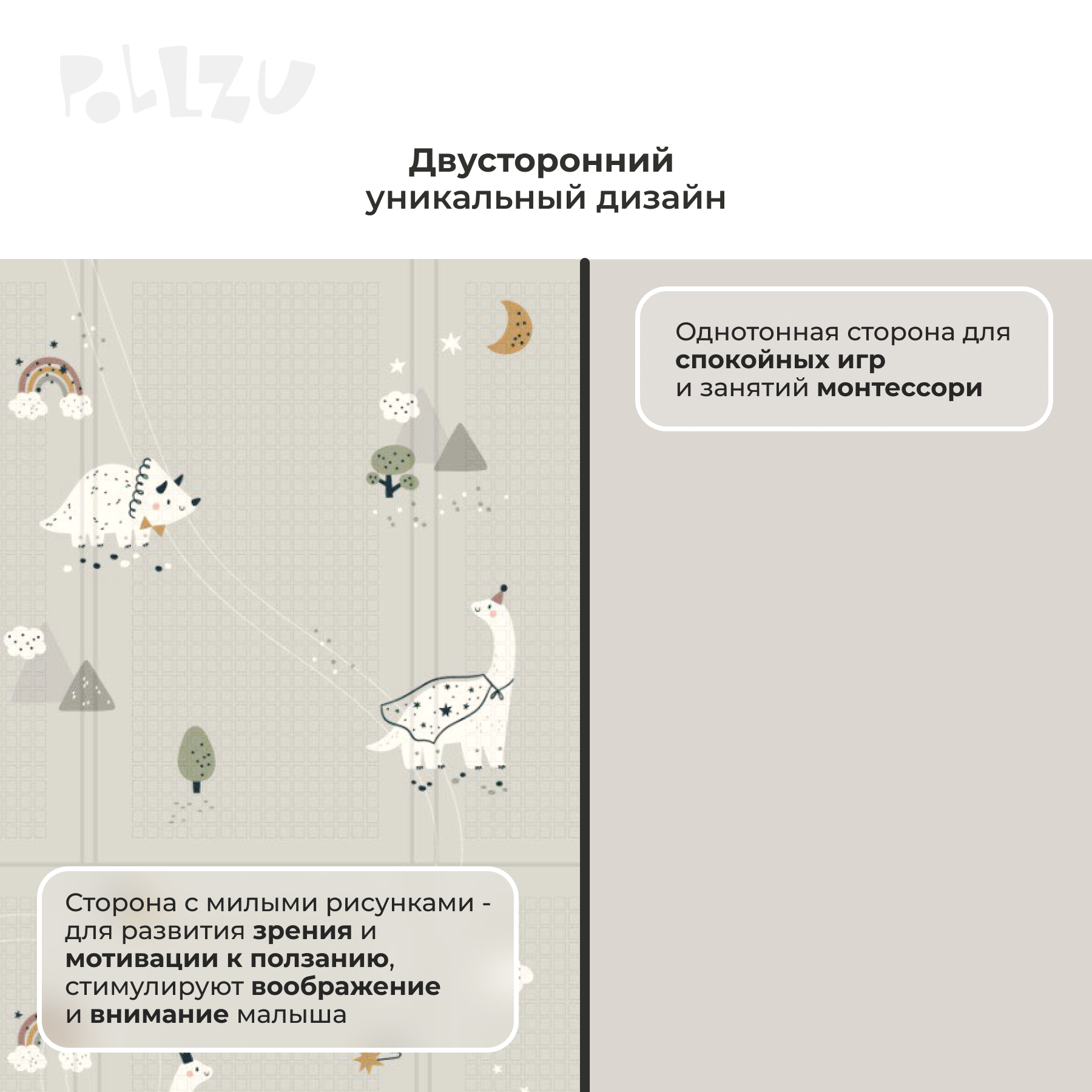 Складной детский игровой коврик Pollzu "Динозаврики" развивающий и массажный для ползания малышей, 180x150 интересное: