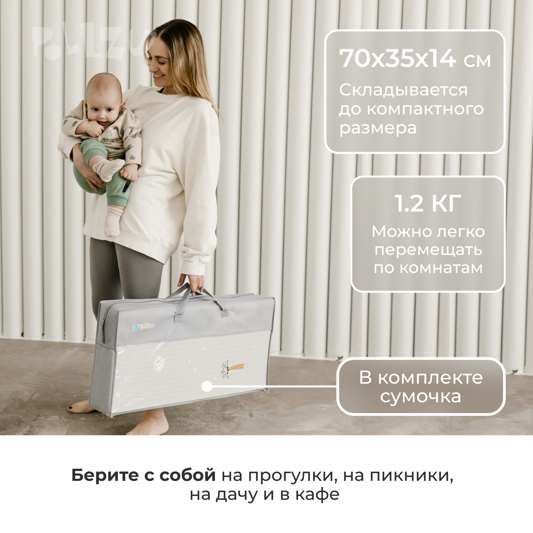 | Комплектация | Детский коврик - 1 шт. Сумка - переноска - 1 шт. |