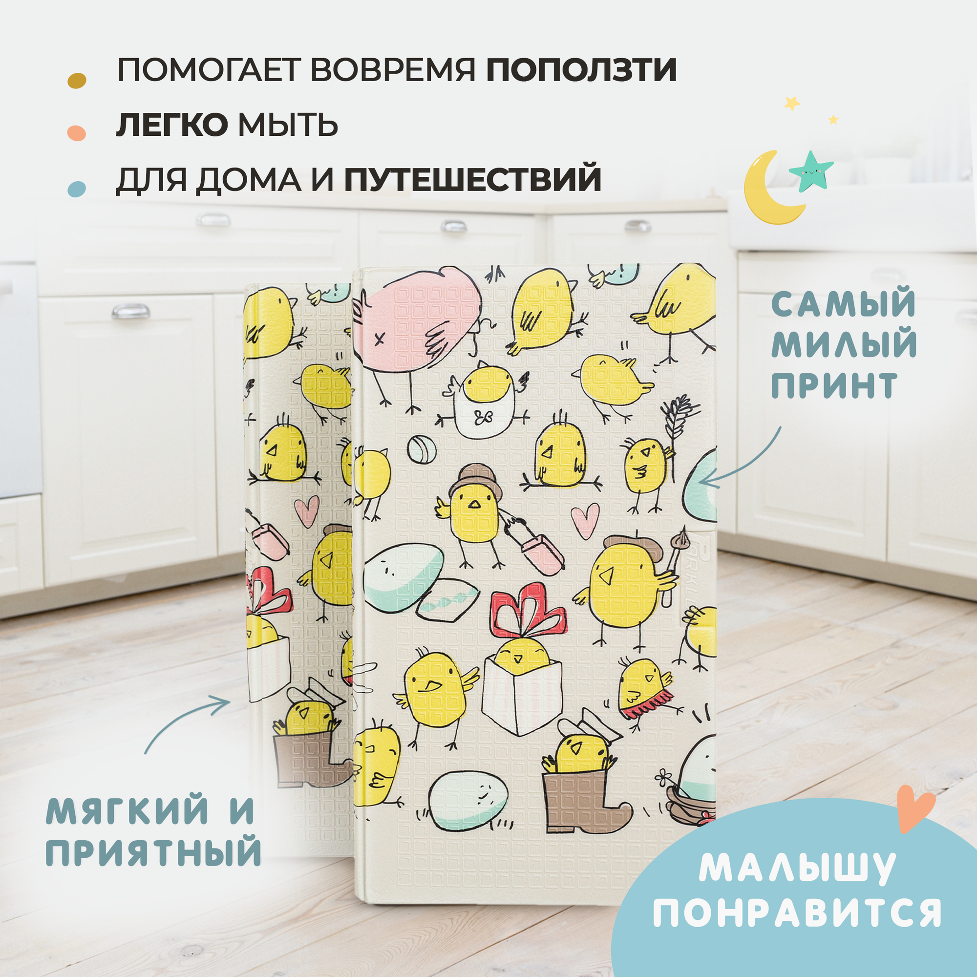 Купить Складной детский игровой коврик Pollzu "Цыплята" развивающий и массажный для ползания малышей, 140x200