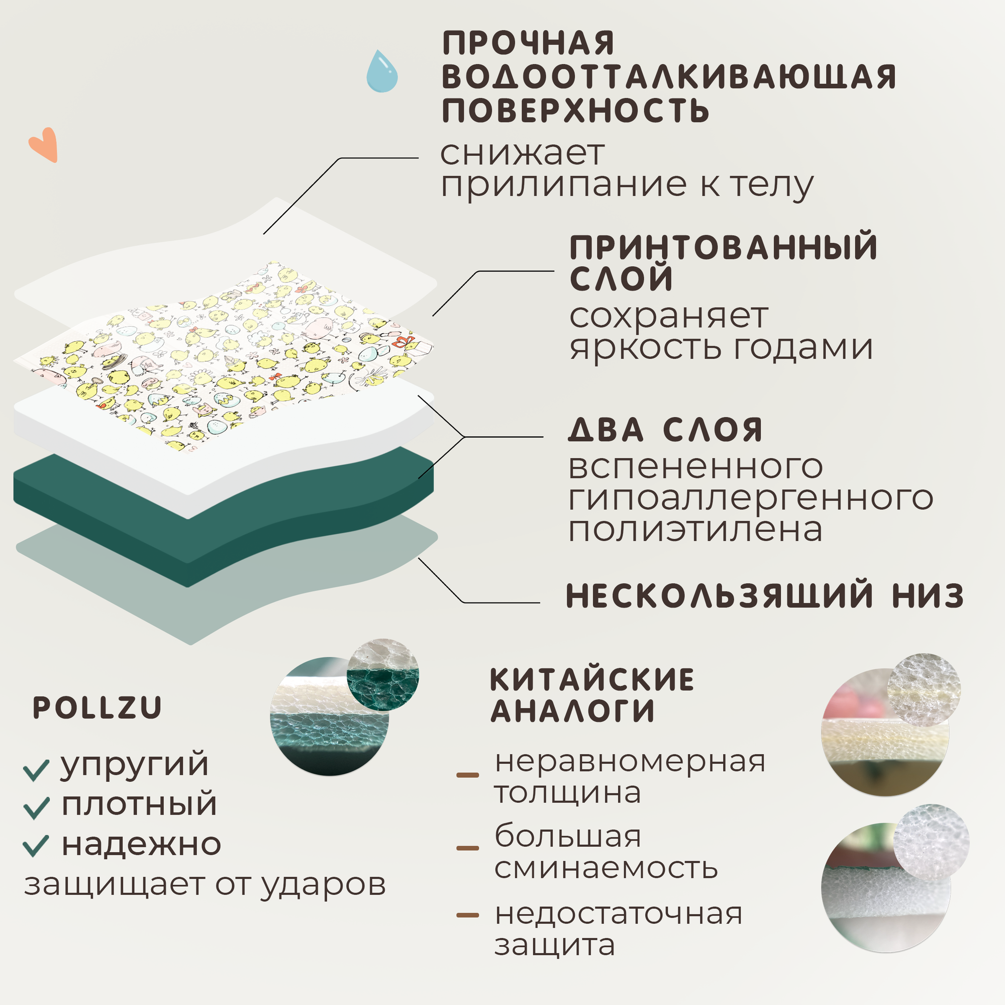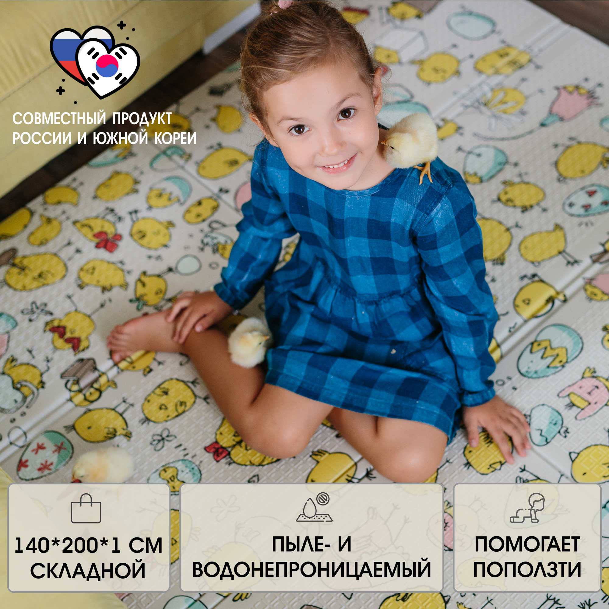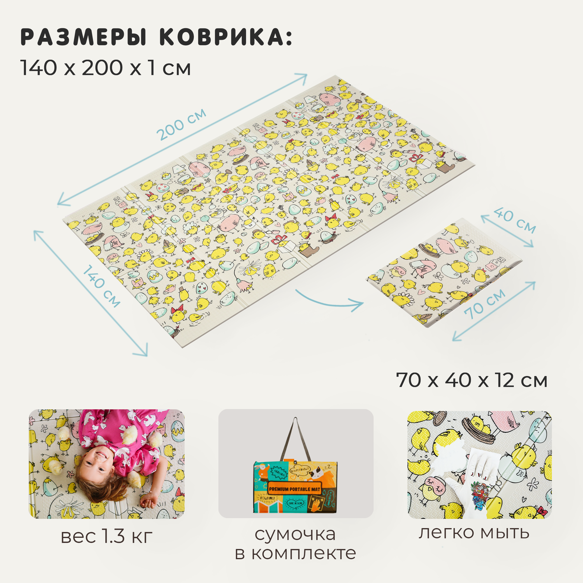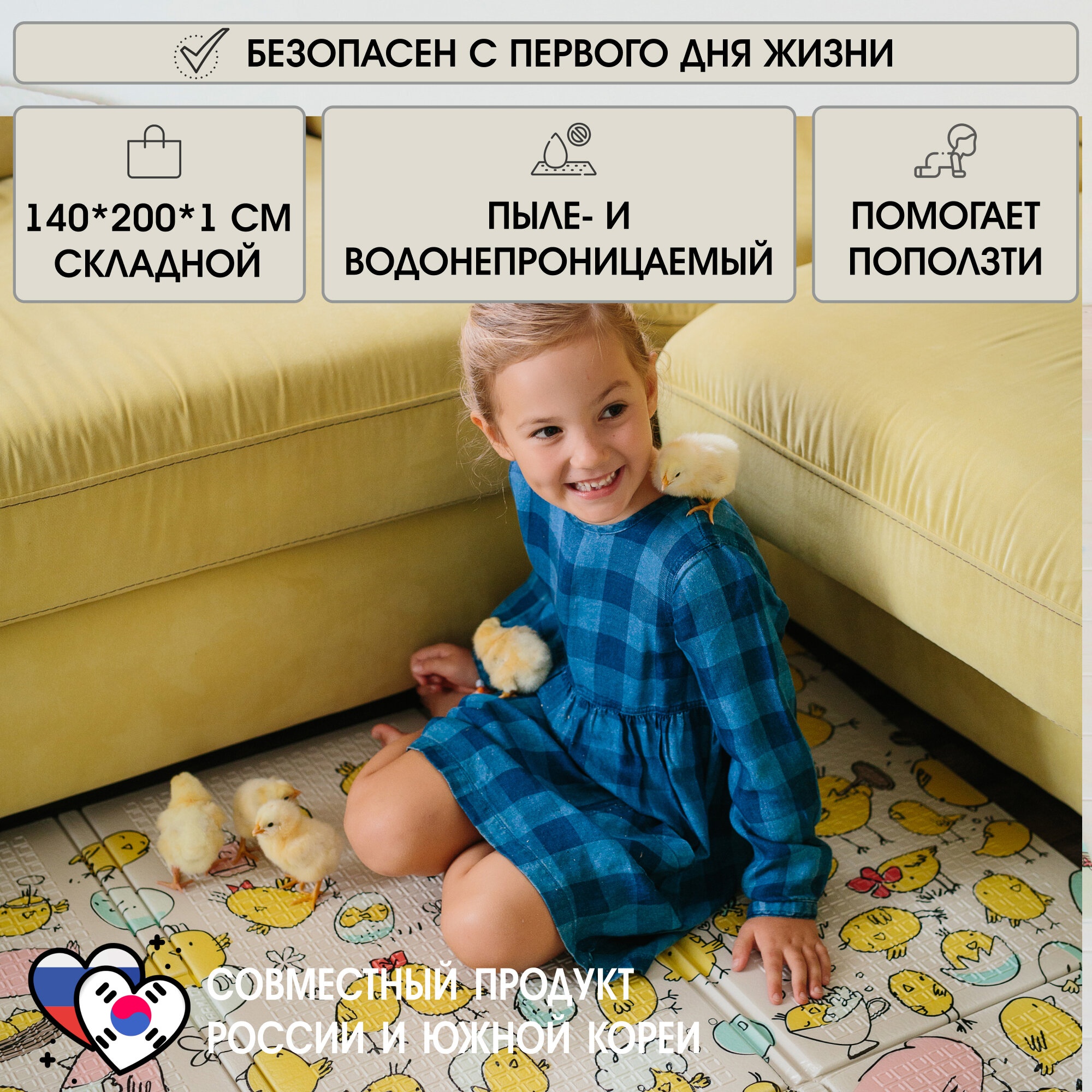 Складной детский игровой коврик Pollzu "Цыплята" развивающий и массажный для ползания малышей, 140x200 интересное: