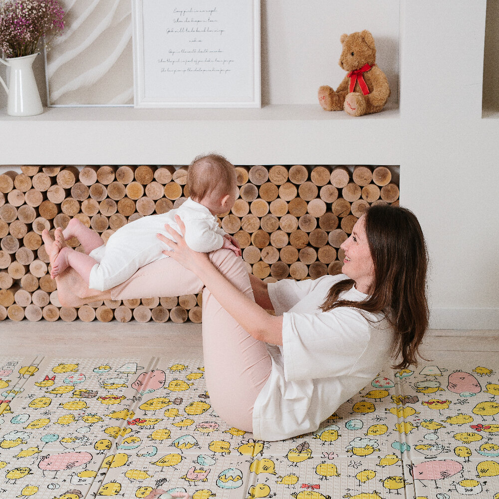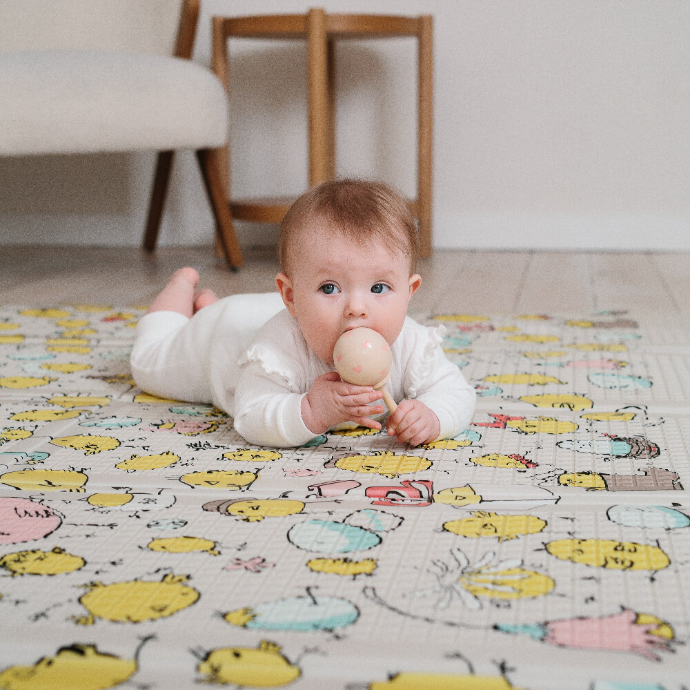 Складной детский коврик игровой развивающий для ползания для малышей Pollzu 140x200x1 см, Цыплята
