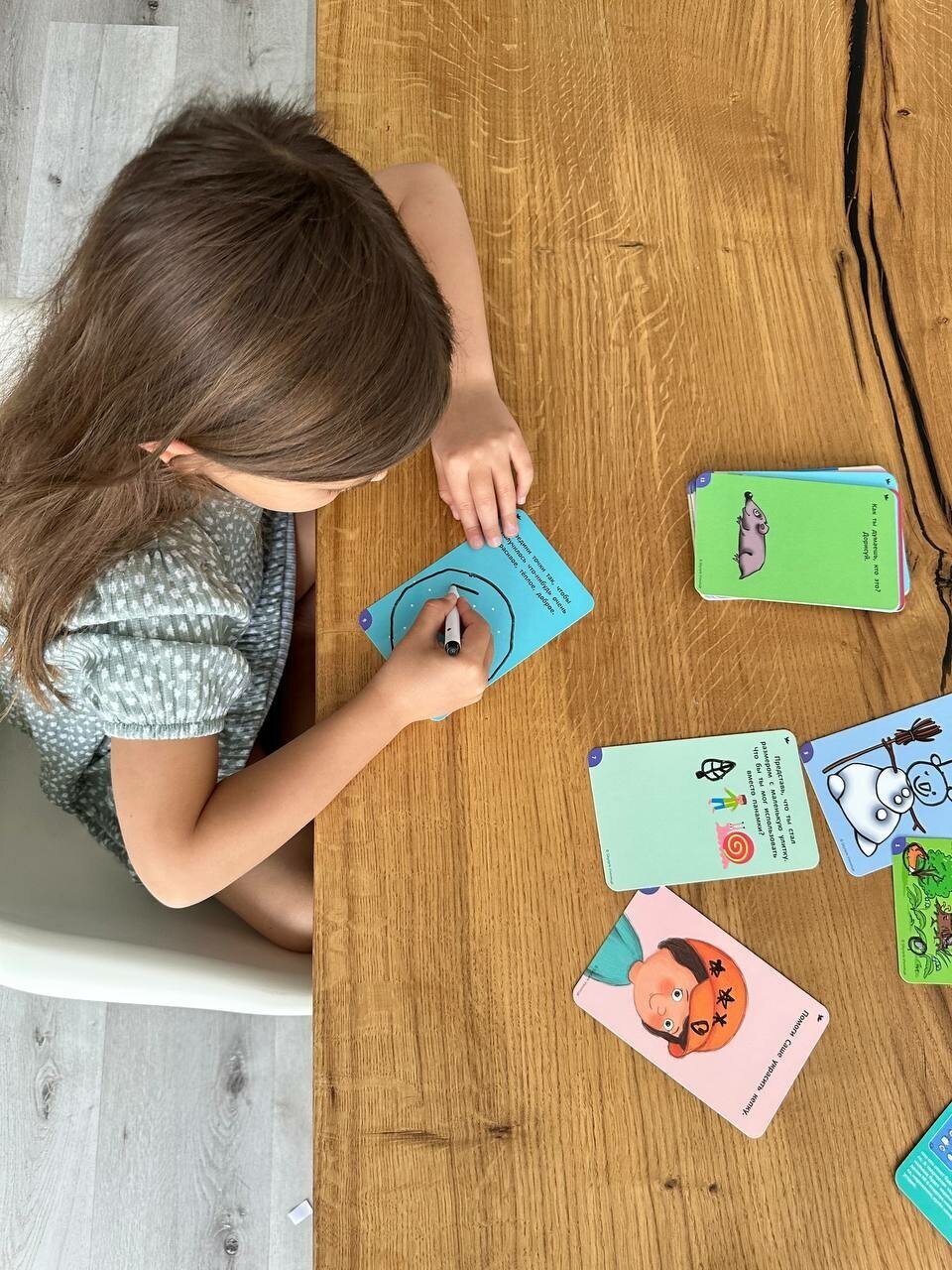 | Комплектация | - 50 ламинированных карточек с заданиями с двух сторон; - 1 методическая карточка; - 1 маркер |