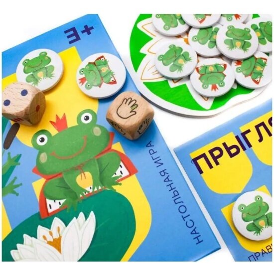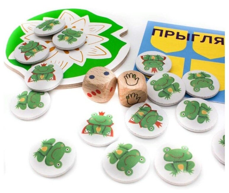 | Комплектация | 15 лягушек, 1 кувшинка, 2 игральных кубика, правила игры |
