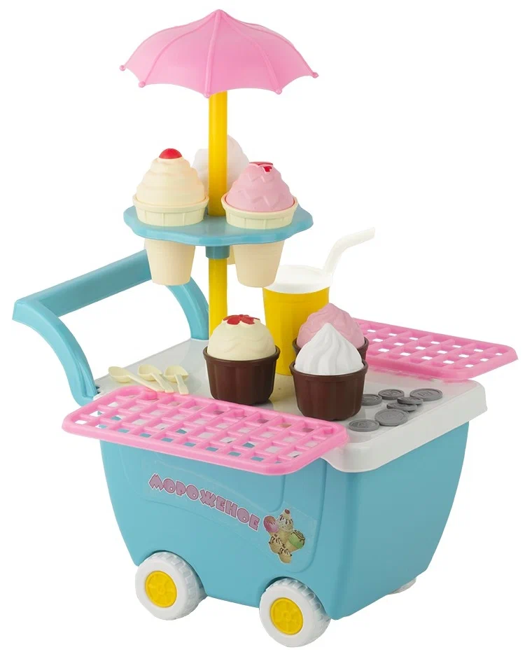 | Комплектация | тележка / мороженое 3 шт. / кекс 3 шт. / подставка с мини-зонтиком / ложка чайная 3 шт. / стакан / монеты - 1 комплект |