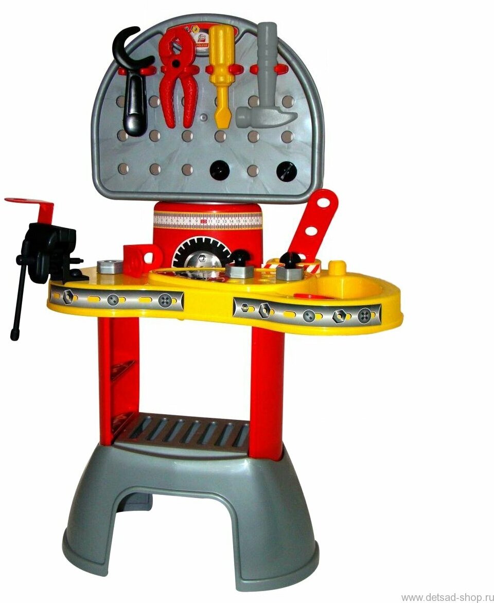 | Комплектация | верстак, тиски, молоток, пассатижи, гаечный ключ, отвертка, 2 полоски длинные, 2 полоски короткие, 2 уголка, 4 винта, 4 гайки |