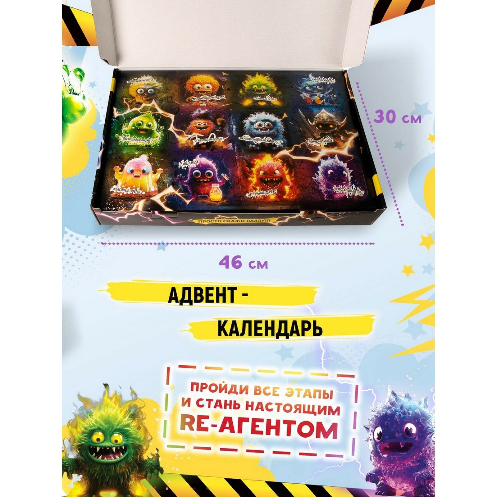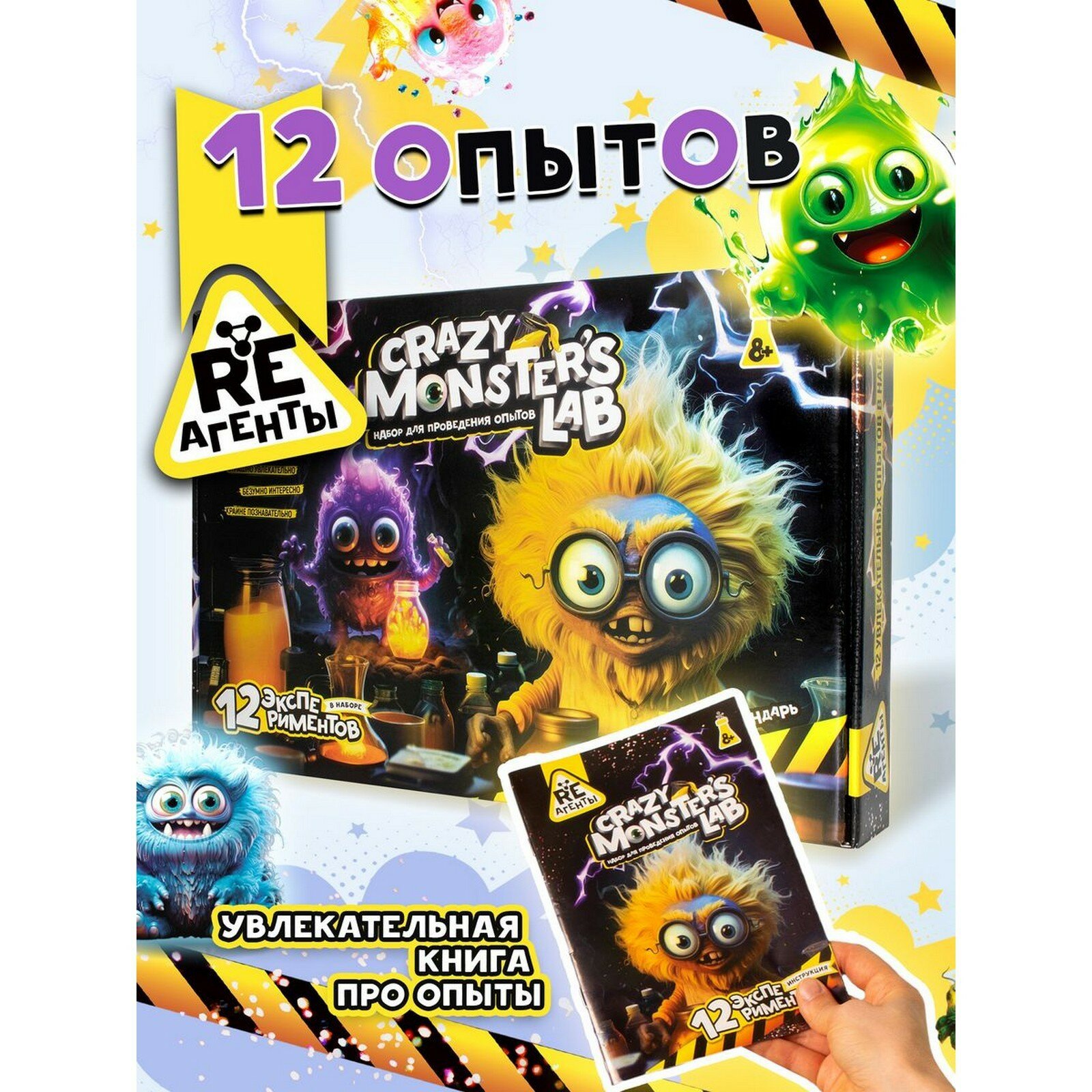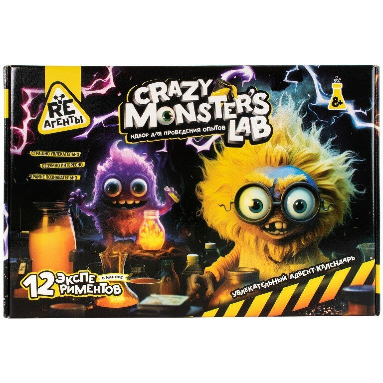 Набор для опытов 12 в 1 "Монстр Лаб" Re-агенты, адвент календарь для детей, опыты и эксперименты